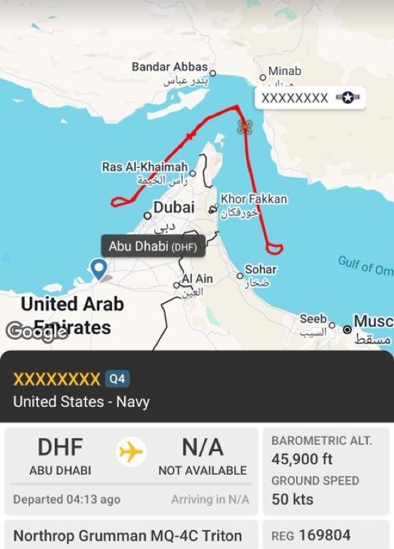 突发新闻:美国海军MQ-4C“海神”无人机在霍尔木兹海峡上空执行监视任务。 一架美国海军 MQ-4C“海神”无人机正在战略要地霍尔木兹海峡上空进行高空监视,监测海上交通和地区动态。 此举凸显了美国在全球石油运输的关键咽喉要道持续开展情报和侦察工作。
