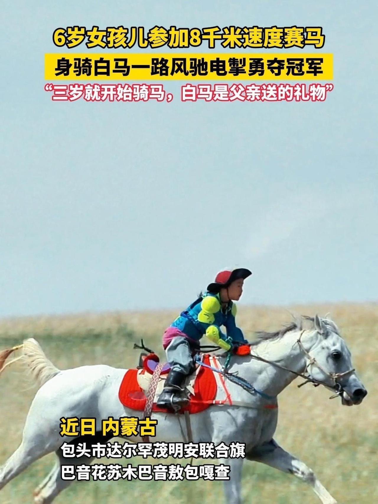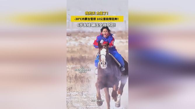 零下30℃封神!6岁草原娃骑蒙古马10公里碾压成年对手 (文章内容仅供参考,无任何不良引导) 内蒙古锡林郭勒盟雪原上,零下30℃的低温冻得空气都发脆,寒风像无数小刀子往脸上扎。6岁的恩科娜仁裹着红蓝骑手服,像团烧得正旺的小火苗,稳稳伏在7岁蒙古马“风影”背上,在第三届冬季蒙古马超级联赛10公里耐力赛里一路领跑,最终以绝对优势冲线夺冠。 赛道藏满“陷阱” 冻土路段颠簸得像筛豆子 浅雪区域滑溜溜堪比结冰的澡堂子 连经验老道的成年骑手都得攥紧缰绳不敢松懈。可这个草原小姑娘小手握缰稳得像焊在马背上 身体跟着马蹄节奏轻轻起伏 贴合得如同磁铁吸住铁板。察觉到“风影”爬坡时喘气粗重 她立刻轻扯缰绳放慢速度 小手掌摸着马脖子低声安抚 等马儿缓过劲再加速 一人一马的默契赛过多年老友。 冲刺阶段 恩科娜仁身子往前一弓 减少风阻 双腿轻轻一夹马腹 “风影”立刻撒开蹄子狂奔 马蹄踏在雪地上 溅起的雪雾像白色浪花 最终一骑绝尘冲过终点线。小姑娘满脸沾着雪粒 小拳头高高扬起 笑容比雪原上的太阳还晃眼 现场的欢呼声直接盖过了寒风的呼啸声。 这亮眼成绩绝非偶然 恩科娜仁3岁就和马匹结缘 每天清晨跟着父亲练牵行 学控马 摔倒了爬起来 还会摸摸马脖子说句对不起。这份藏在草原孩子骨子里的热爱 在家人陪伴下慢慢长成锋芒 再加上赛事专业保障兜底 让小骑手的勇气有了安放之处。 6岁娃能在极寒雪原赢过成年骑手 是天赋加持还是日积月累的结果 你觉得她未来能成为顶尖骑手吗