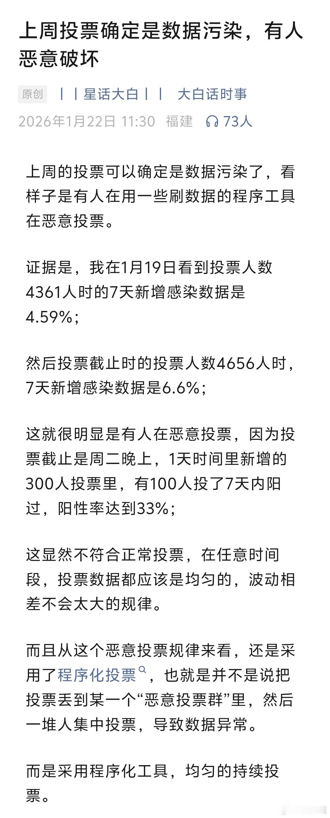 大白的投票被污染了?🍬子,2026年还见不得新冠呢?
