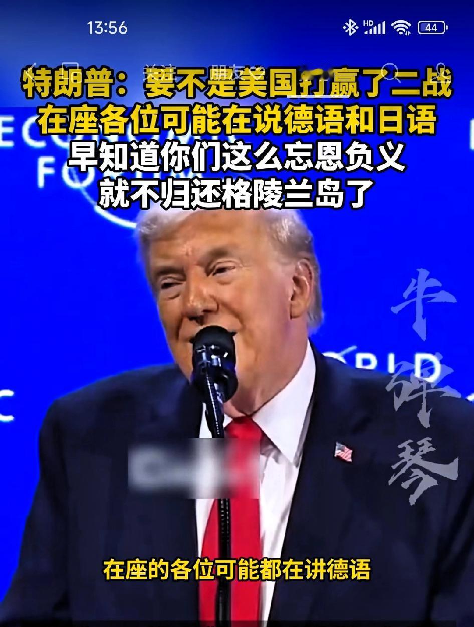 特朗普:要不是美国打赢了二战,在座的各位可能在说德语还夹杂点日语。 我尊重格陵兰岛人民和丹麦人民,但是只有美国可以保护格陵兰岛。 如果没有美国,你们现在可能还在说德语和日语。 二战后将格陵兰岛归还丹麦是愚蠢之举,你们现在简直是“忘恩负义”。