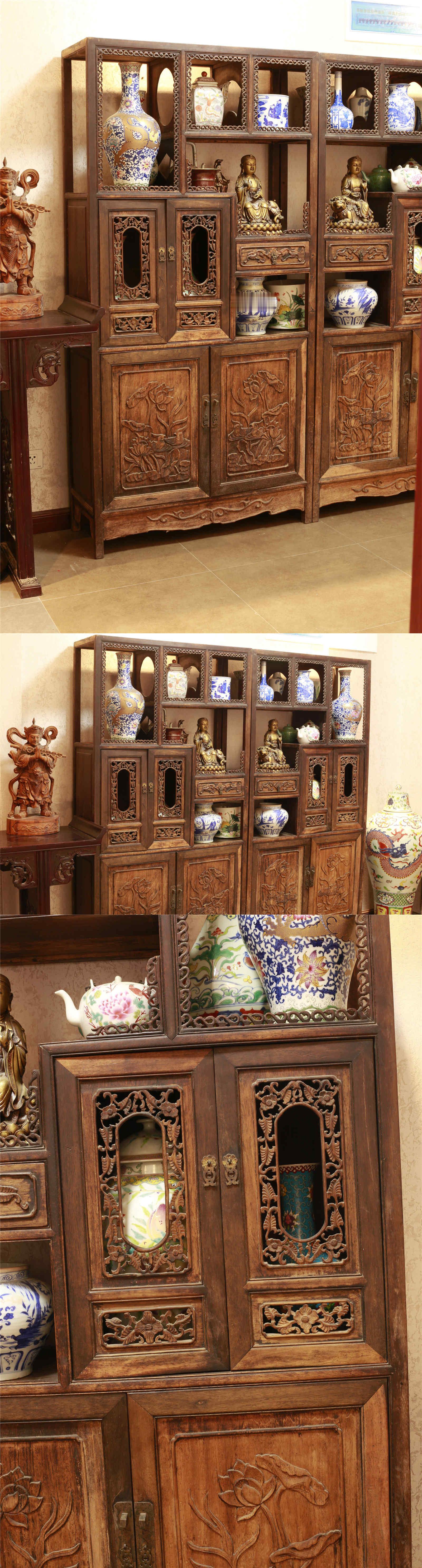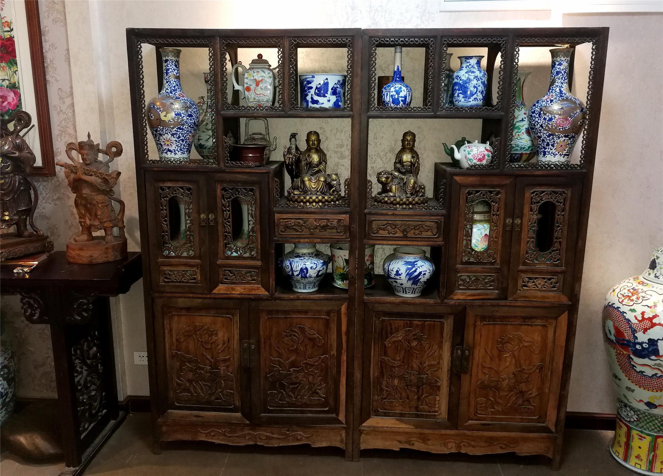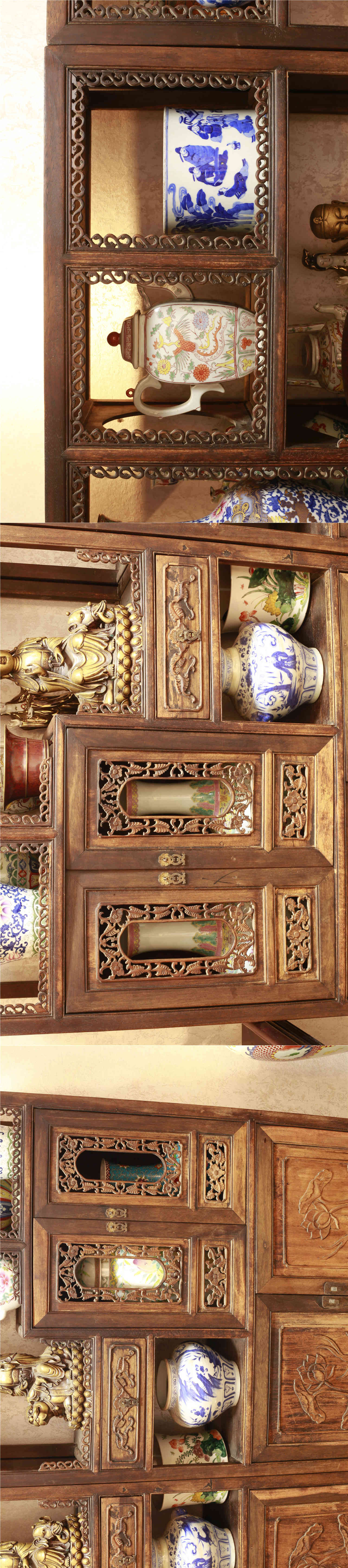 清代海南黃花梨雕花多寶閣 兩件一套兩個多寶閣櫃子合起來寬大概1.76米,高好像是一米八,品相也不錯,品相完整,不缺失任何東西,無修補,都是原配原檔沒動過手,滿徹黃花梨,無雜拼,只是沒保養好,一直陽光直射的被照耀,所以花了點,需要專業保養和燙蠟,需要好好擦洗。多宝阁比萬曆柜路份高,多宝阁本身是放古玩的陳設家具,本身講究美觀,做工考究,多宝阁是古代家具櫃箱內路份最高的,此阁款式好,款式非常經典,標準的清代多宝阁款式,此阁帶抽屜、帶櫃子,帶架子,老工,有收有藏、有开放有收纳,是古代純手工老工雕的,雕工精美,東西非常好,很開門的清代黃花梨,東西沒保養好而已,照相時是沒保養沒擦乾淨時照的,擦乾淨保養保養上上蠟就更漂亮了,真正的黃花梨精品家具重器在當今社會,是很難被(網絡、論壇、現實黃花梨古家具商、拍賣行)承認的,因為很多人不認識,認識的人不好事你不承認你東西,不打擊你東西就算善良的了,讓懂黃花梨的賣黃花梨的賣家內行承認你東西比登天还難,其實都是利益之爭,销售壟斷權話語權之爭罷了,都是妒忌心、私心在做怪,當今買家求鑒定,在利益面前,不為私的公平的幫你鑒定說實話的鑒定家很少,你一個外行,很難遇到懂行的給你說實話,外行想購此重器如不懂就會很迷茫無助,就會被很多人說非海黃擾亂腦子搞得迷惑不解,這件是海南黃花梨的。東西是老的,是一眼開門古代名貴經典家具,沒人敢說這不老,但木質材料它們可能歪嘴說是草花梨的,這個世界歪嘴和尚多了,東西是他的就是黃花梨的、就是對的。你非他圈內人,對的東西也是錯的,甚至刪帖不讓你發。不讓你這麼好的家具展示出現。它怕你搶走了它的客源,這個圈是很黑暗的,很爾虞我詐的。無論現實還是網絡,大到拍賣行、小到一個網站、一個貼吧、一個論壇,都存在幫派化、圈子化,排除異己,吹捧承認自己圈內物、無非就是壟斷銷售權和話語權的問題。此名貴精品重器不是他的,他們一概說是草花梨的。我告訴大家,東西是千真萬確的海南黃花梨的,沒保養好就顯得象草花梨,專業保養維護后就和博物館黃花梨看著一樣油亮美觀了。此物品相不錯的,內裡包漿很厚,展示吧,古色古香,包漿渾厚,東西老熟感十足,韻味十足,古風撲面而來,這是兩件一套 的古代名貴家具,是工料都到的、無修無配的、沒動過手的、原檔滿徹的、清代海南黃花梨多寶閣 精品高档古家具,路份高,原汁原味,不承認拉倒,自用挺好。真正的老家具,材質對,是黃花梨的,摸摸滿手留香,侵人心脾,我的好瓷器,特别有价值的瓷器没在多宝阁内,好瓷器精品大价值瓷器,全在专盒内收藏不示人的,家里公开摆放的是一般的瓷器,精品有价值瓷器不舍得摆在家里人人能见的位置,除青花描金粉彩龙对瓶外,有价值的好瓷器一件也没放进多宝阁内。随手放的是一般的瓷器,随手随便摆的瓷器顺手就放入多宝阁内拍拍照片而已。