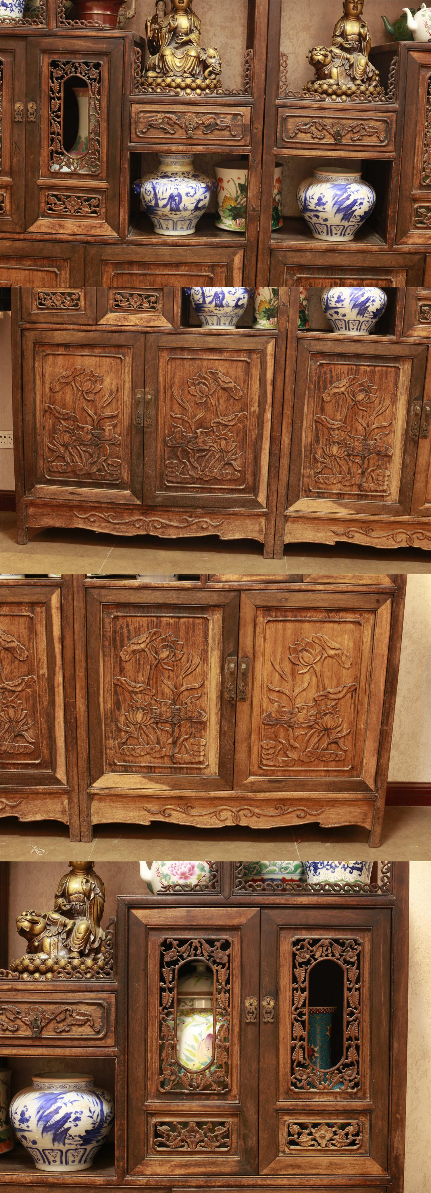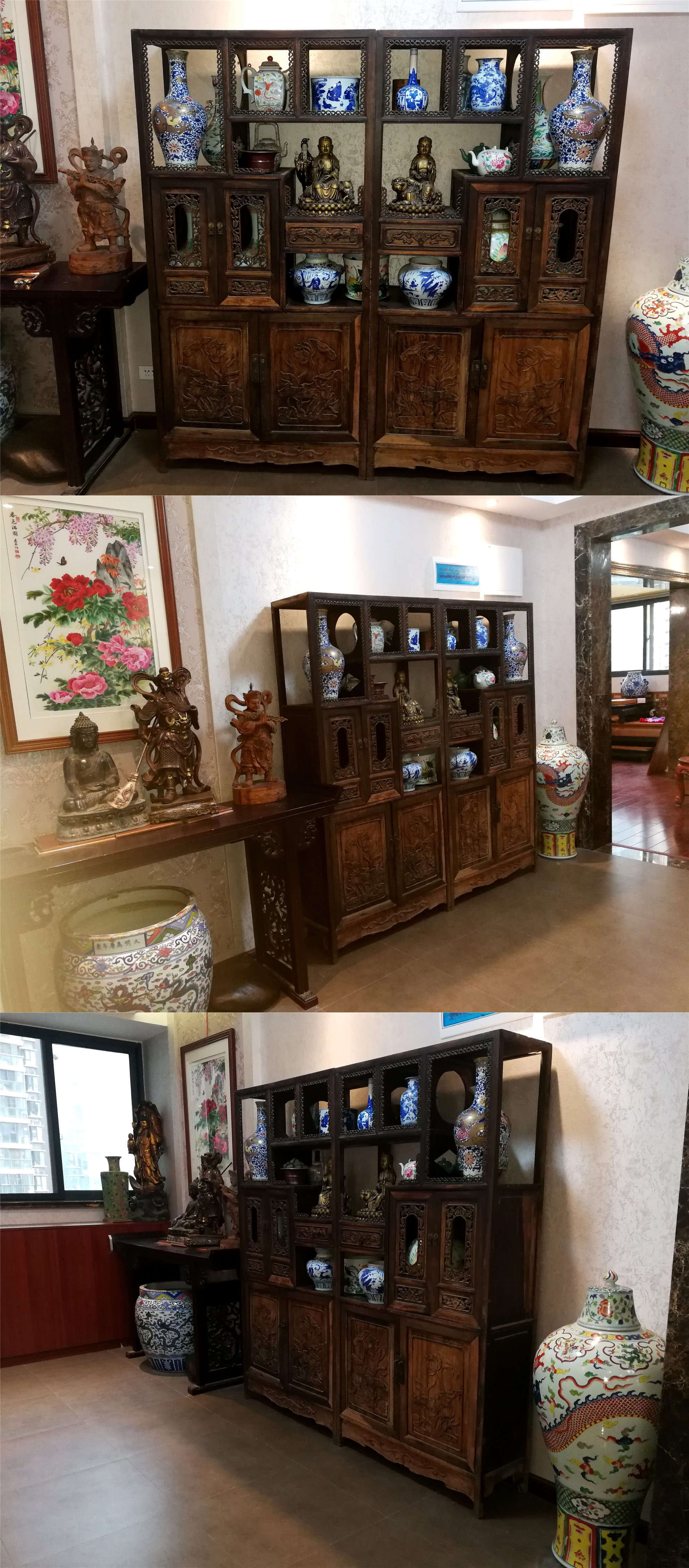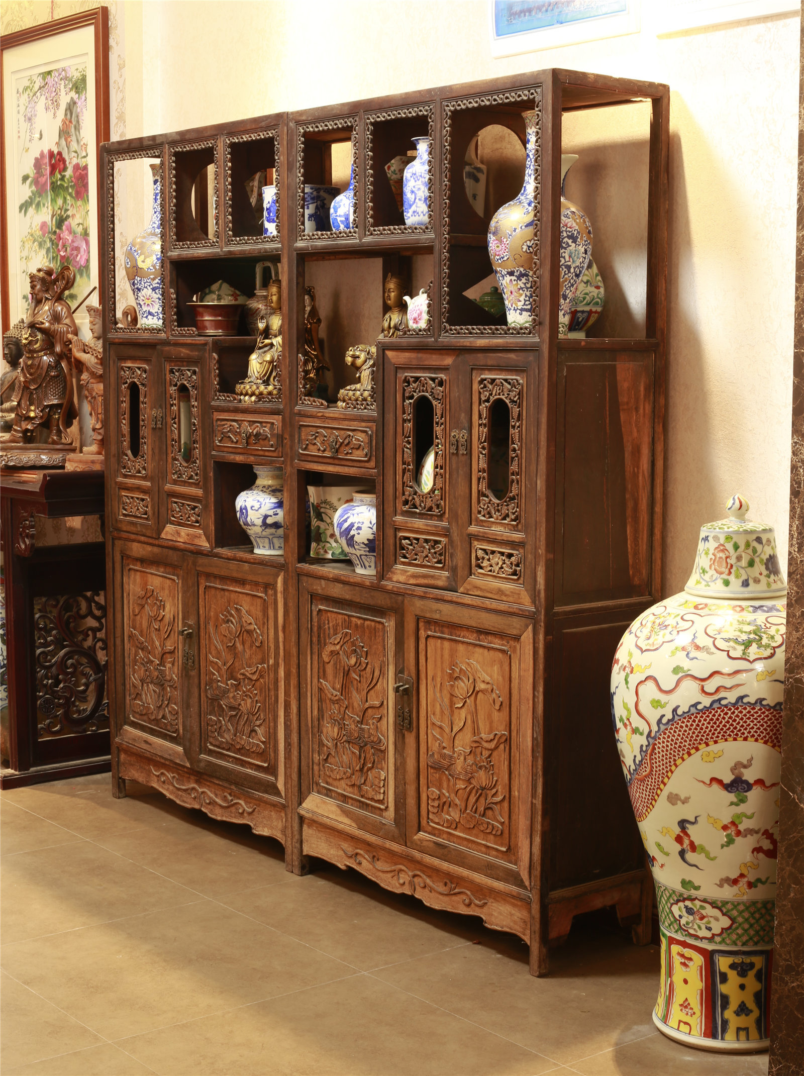 清代海南黃花梨雕花多寶閣 兩件一套兩個多寶閣櫃子合起來寬大概1.76米,高好像是一米八,品相也不錯,品相完整,不缺失任何東西,無修補,都是原配原檔沒動過手,滿徹黃花梨,無雜拼,只是沒保養好,一直陽光直射的被照耀,所以花了點,需要專業保養和燙蠟,需要好好擦洗。多宝阁比萬曆柜路份高,多宝阁本身是放古玩的陳設家具,本身講究美觀,做工考究,多宝阁是古代家具櫃箱內路份最高的,此阁款式好,款式非常經典,標準的清代多宝阁款式,此阁帶抽屜、帶櫃子,帶架子,老工,有收有藏、有开放有收纳,是古代純手工老工雕的,雕工精美,東西非常好,很開門的清代黃花梨,東西沒保養好而已,照相時是沒保養沒擦乾淨時照的,擦乾淨保養保養上上蠟就更漂亮了,真正的黃花梨精品家具重器在當今社會,是很難被(網絡、論壇、現實黃花梨古家具商、拍賣行)承認的,因為很多人不認識,認識的人不好事你不承認你東西,不打擊你東西就算善良的了,讓懂黃花梨的賣黃花梨的賣家內行承認你東西比登天还難,其實都是利益之爭,销售壟斷權話語權之爭罷了,都是妒忌心、私心在做怪,當今買家求鑒定,在利益面前,不為私的公平的幫你鑒定說實話的鑒定家很少,你一個外行,很難遇到懂行的給你說實話,外行想購此重器如不懂就會很迷茫無助,就會被很多人說非海黃擾亂腦子搞得迷惑不解,這件是海南黃花梨的。東西是老的,是一眼開門古代名貴經典家具,沒人敢說這不老,但木質材料它們可能歪嘴說是草花梨的,這個世界歪嘴和尚多了,東西是他的就是黃花梨的、就是對的。你非他圈內人,對的東西也是錯的,甚至刪帖不讓你發。不讓你這麼好的家具展示出現。它怕你搶走了它的客源,這個圈是很黑暗的,很爾虞我詐的。無論現實還是網絡,大到拍賣行、小到一個網站、一個貼吧、一個論壇,都存在幫派化、圈子化,排除異己,吹捧承認自己圈內物、無非就是壟斷銷售權和話語權的問題。此名貴精品重器不是他的,他們一概說是草花梨的。我告訴大家,東西是千真萬確的海南黃花梨的,沒保養好就顯得象草花梨,專業保養維護后就和博物館黃花梨看著一樣油亮美觀了。此物品相不錯的,內裡包漿很厚,展示吧,古色古香,包漿渾厚,東西老熟感十足,韻味十足,古風撲面而來,這是兩件一套 的古代名貴家具,是工料都到的、無修無配的、沒動過手的、原檔滿徹的、清代海南黃花梨多寶閣 精品高档古家具,路份高,原汁原味,不承認拉倒,自用挺好。真正的老家具,材質對,是黃花梨的,摸摸滿手留香,侵人心脾,我的好瓷器,特别有价值的瓷器没在多宝阁内,好瓷器精品大价值瓷器,全在专盒内收藏不示人的,家里公开摆放的是一般的瓷器,精品有价值瓷器不舍得摆在家里人人能见的位置,除青花描金粉彩龙对瓶外,有价值的好瓷器一件也没放进多宝阁内。随手放的是一般的瓷器,随手随便摆的瓷器顺手就放入多宝阁内拍拍照片而已。