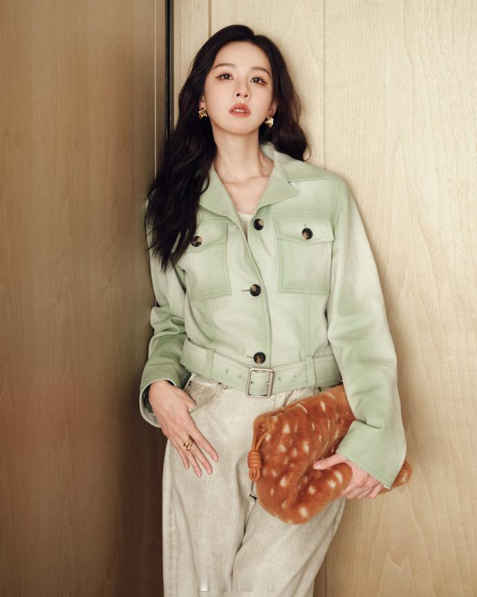 浅绿外套配耳坠、温柔甜笑元气娇俏——陈都灵。每日明星美图分享