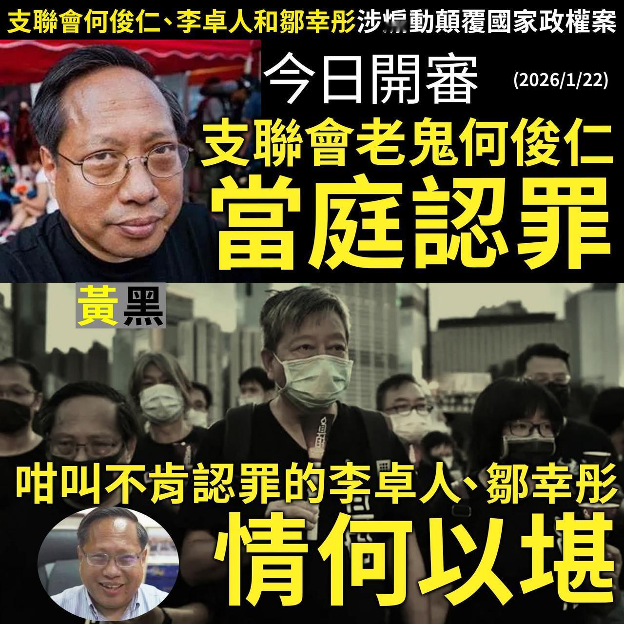 3名乱港分子受审,支联的AV仁、李卓人和邹幸彤今日开审。 何俊仁选择认罪是因为证据确凿,希望认罪减刑。 另外李卓人和邹幸彤死撑,一直不认罪,什么「齐上齐落」沦为大笑话,"大难临头各自飞"演译出神入化。 何俊仁乱港分子何俊仁认罪 乱港分子何俊仁认罪