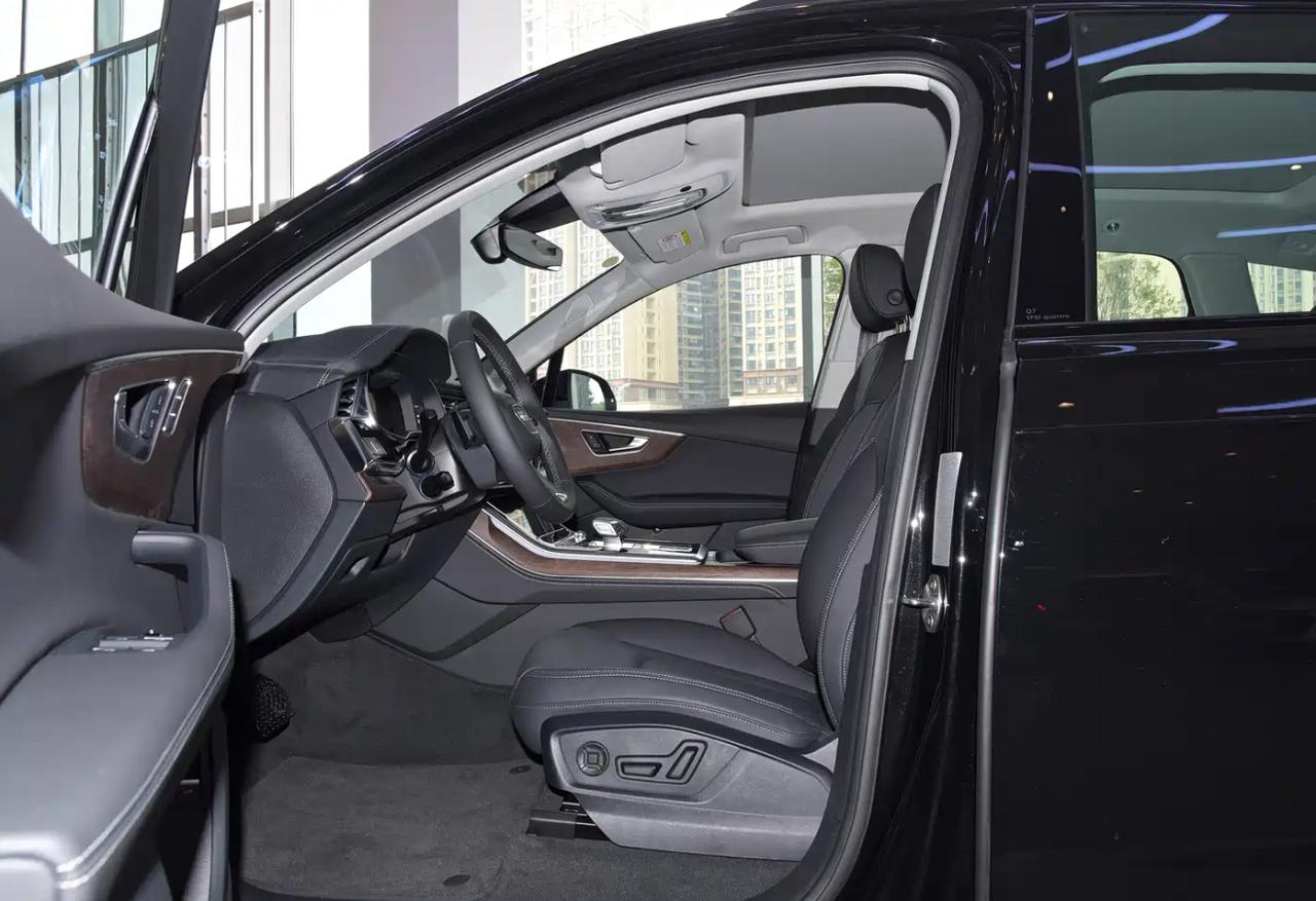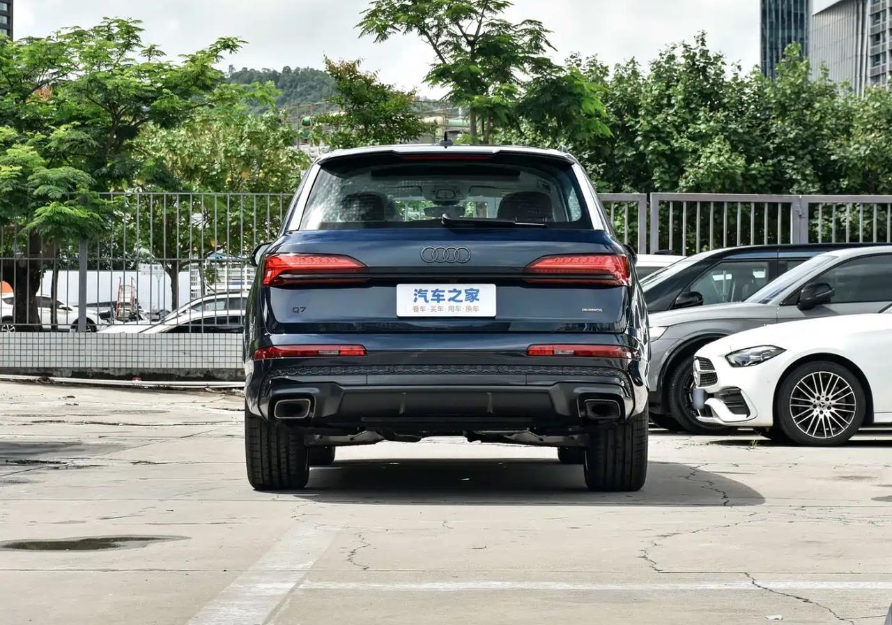 2025款奥迪Q7:参数与体验的客观呈现 2025款奥迪Q7为进口中大型SUV,2025年6月上市,车身尺寸5077×1970×1714mm,轴距3000mm,提供5门5座/7座布局,七座版后备厢常规容积740L,放倒后排后可扩展至1320L。官方指导价区间60.98万-80.48万元,包含45 TFSI(2.0T+48V轻混)黑武士型60.98万、运动型63.68万,55 TFSI(3.0T+48V轻混)黑武士型/运动型70.68万、尊贵型80.48万,全系采用前置四驱布局,匹配8挡手自一体变速箱与quattro全时四驱系统,标配自适应空气悬架,可实现90mm高度调节。 动力层面,45 TFSI车型搭载2.0T L4发动机,最大功率195kW(265Ps),峰值扭矩370N·m,0-100km/h加速6.9秒,WLTC综合油耗9.6L/100km;55 TFSI车型搭载3.0T V6发动机,最大功率250kW(340Ps),峰值扭矩500N·m,0-100km/h加速5.9秒,WLTC综合油耗11.1L/100km。座舱采用12.3英寸全液晶仪表+10.1英寸中控屏+8.6英寸空调触控屏三屏联动设计,支持OTA升级,55 TFSI尊贵型配备HUD抬头显示、50W无线充电、激光大灯及Bang&Olufsen音响。安全配置方面,全系标配主副驾气囊、前排侧气囊、前后排头部气帘及ESP车身稳定系统,智驾版搭载L2级驾驶辅助系统,具备全速域ACC、车道居中、自动泊车功能,55 TFSI尊贵型额外增加主动刹车、夜视系统与后轮转向功能。 内饰采用黑+米双色等配色方案,座椅为仿皮材质,主驾驶支持前后、靠背及2向高低手动调节,副驾驶支持前后和靠背手动调节,配备热泵空调与PM2.5过滤装置,但后排未设置独立空调出风口,后窗无雨刮器,内饰部分区域采用硬塑料材质。整车质保期为3年或10万公里,保养周期为1万公里/次,6万公里保养总成本预估约2.65万元,车辆整备质量2120-2300kg,最大满载质量2870kg,最小转弯半径5.95m,轮胎规格为285/40 R21,部分版本可选装285/35 R22规格轮胎。 (图片来源:汽车之家)