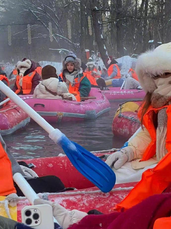 长白山偶遇章若楠玩漂流 网友长白山偶遇章若楠玩漂流,好萌的小女孩!
