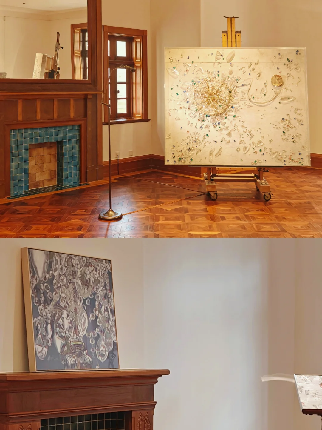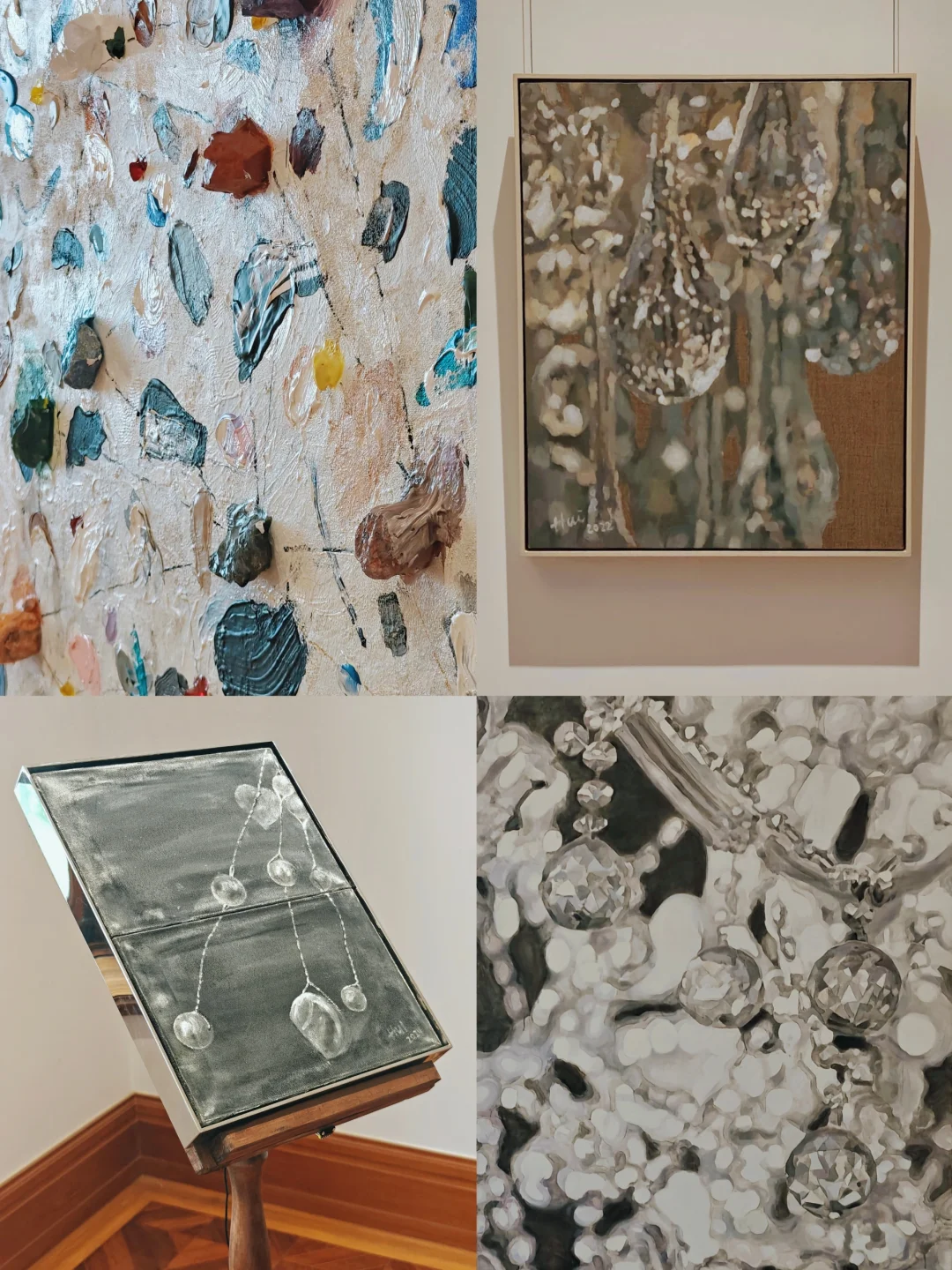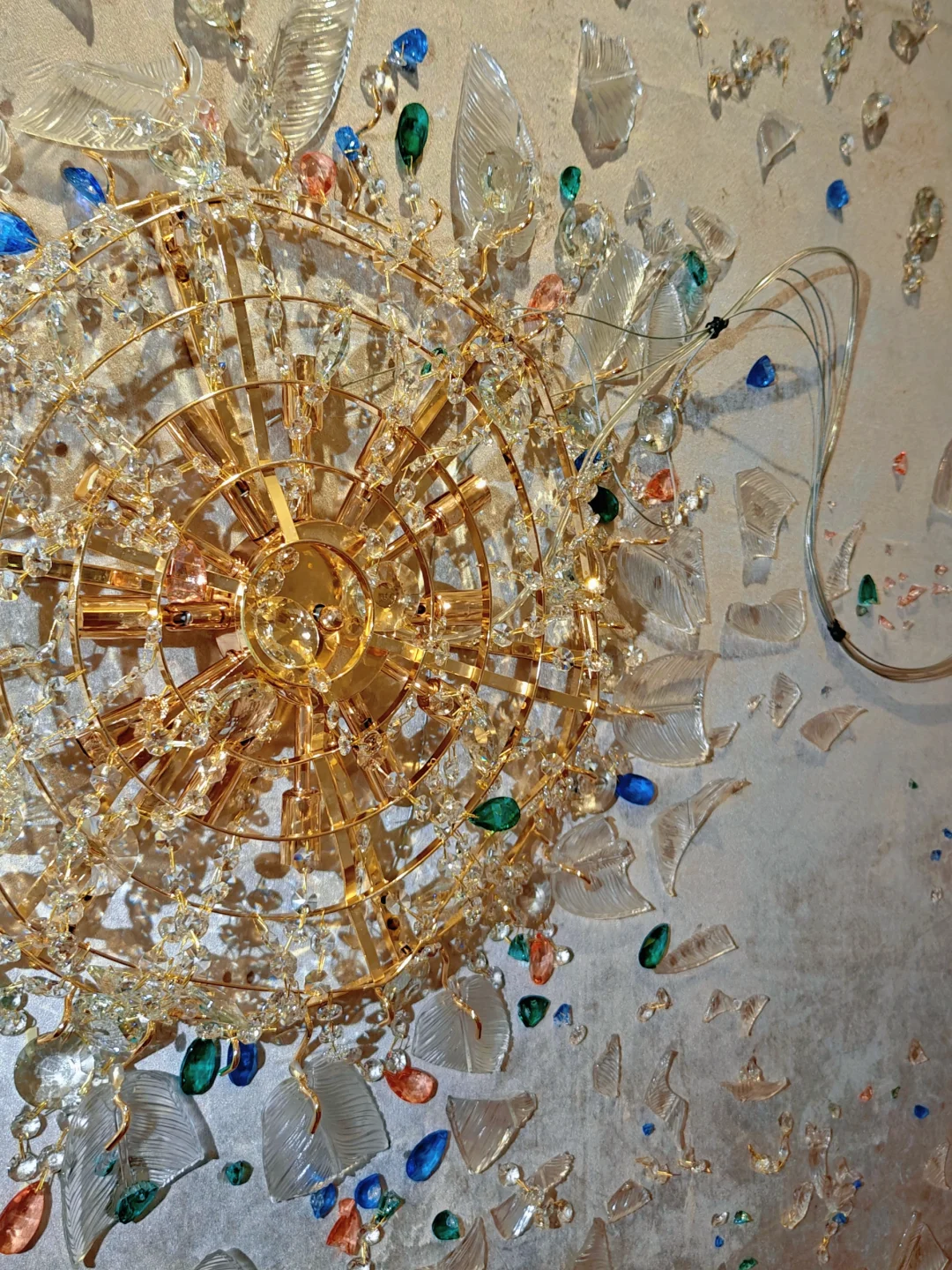 ??作品既有描绘水晶玻璃的布面丙烯的创作,也有结合了真实的水晶玻璃让作品随光线呈现动态色彩变化与丰富视觉层次的综合作品,更有破碎的水晶灯做成的装置作品。