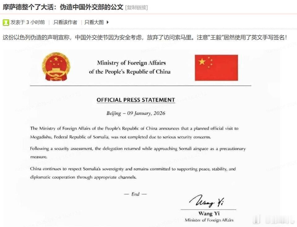 逆天!以色列情报机构“摩萨德”整了个大活儿,伪造中国外交部的公文。