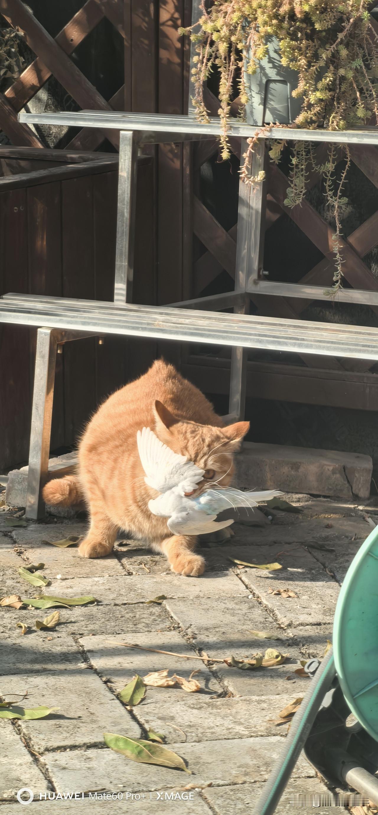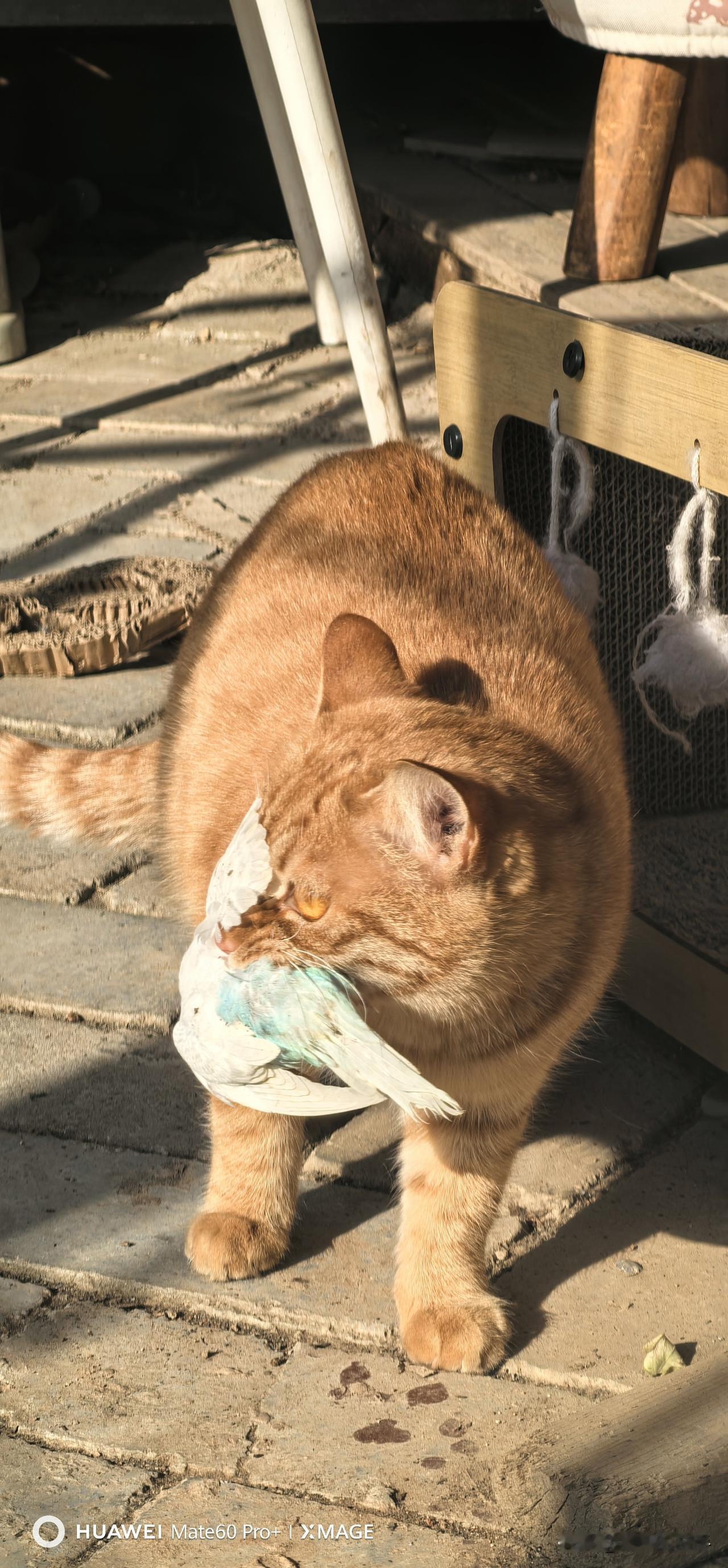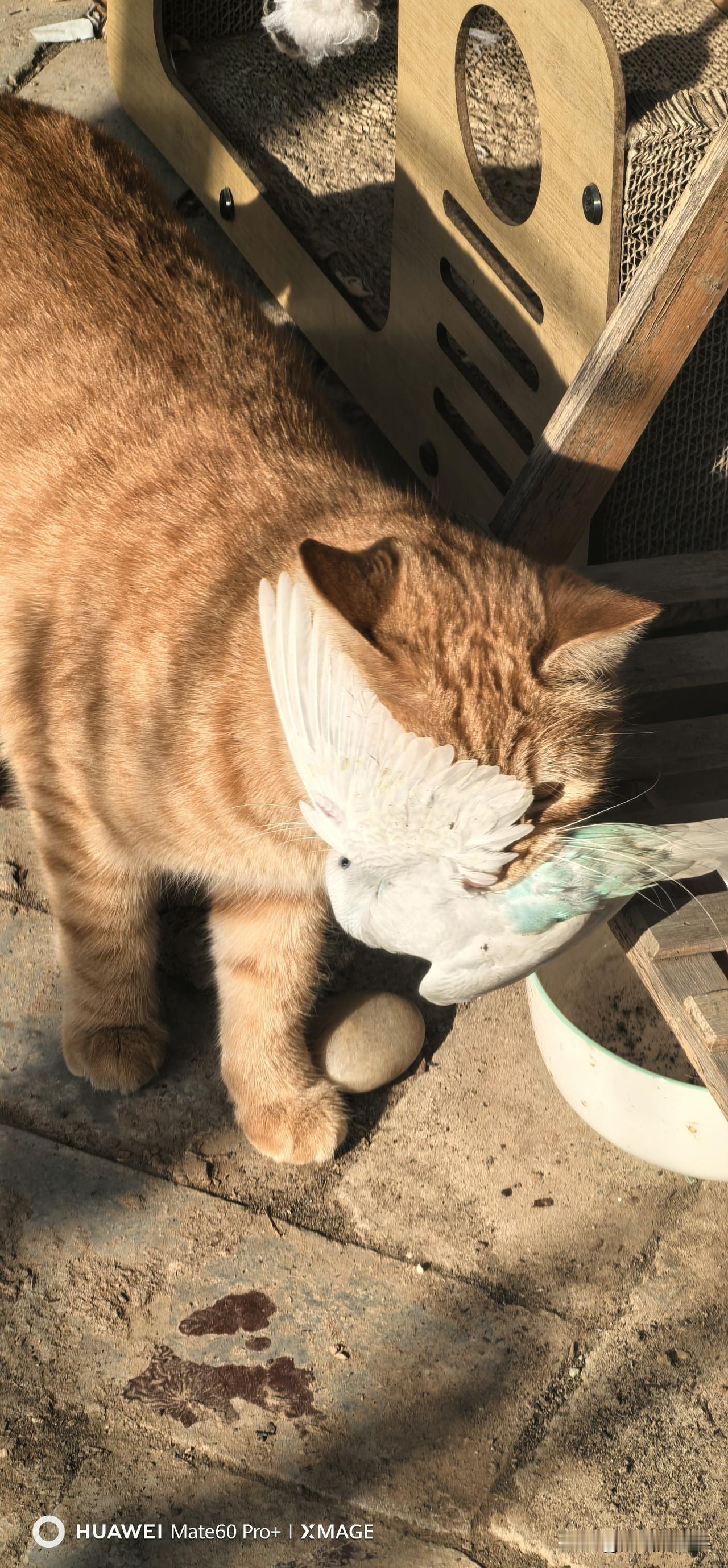 有没有一张随手拍是你的满意之作看看橘右京今天的收获,是一只白色的小鹦鹉,不知道是谁家的鹦鹉走失了,跑到天台上被我们的小家伙抓住。
