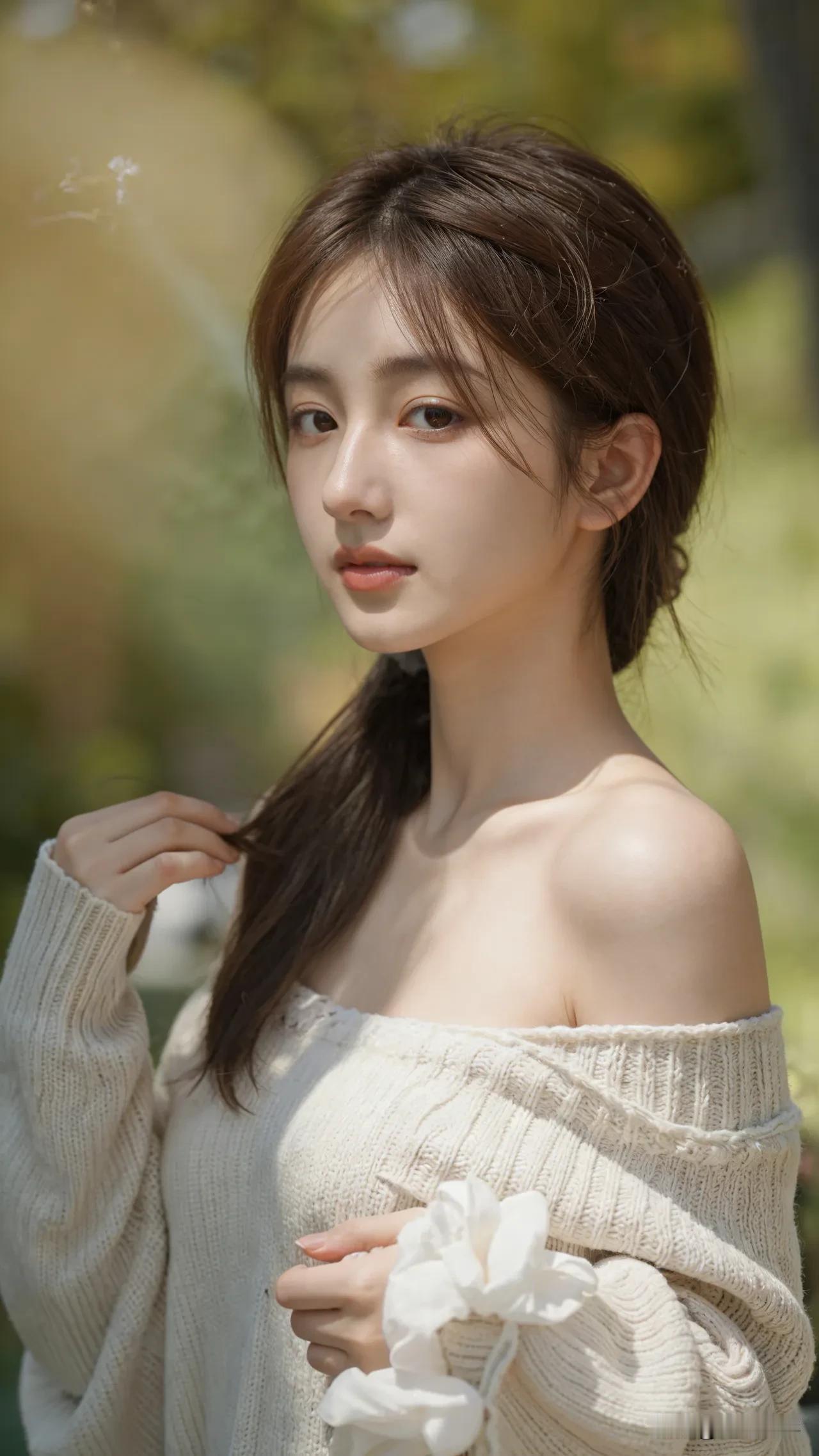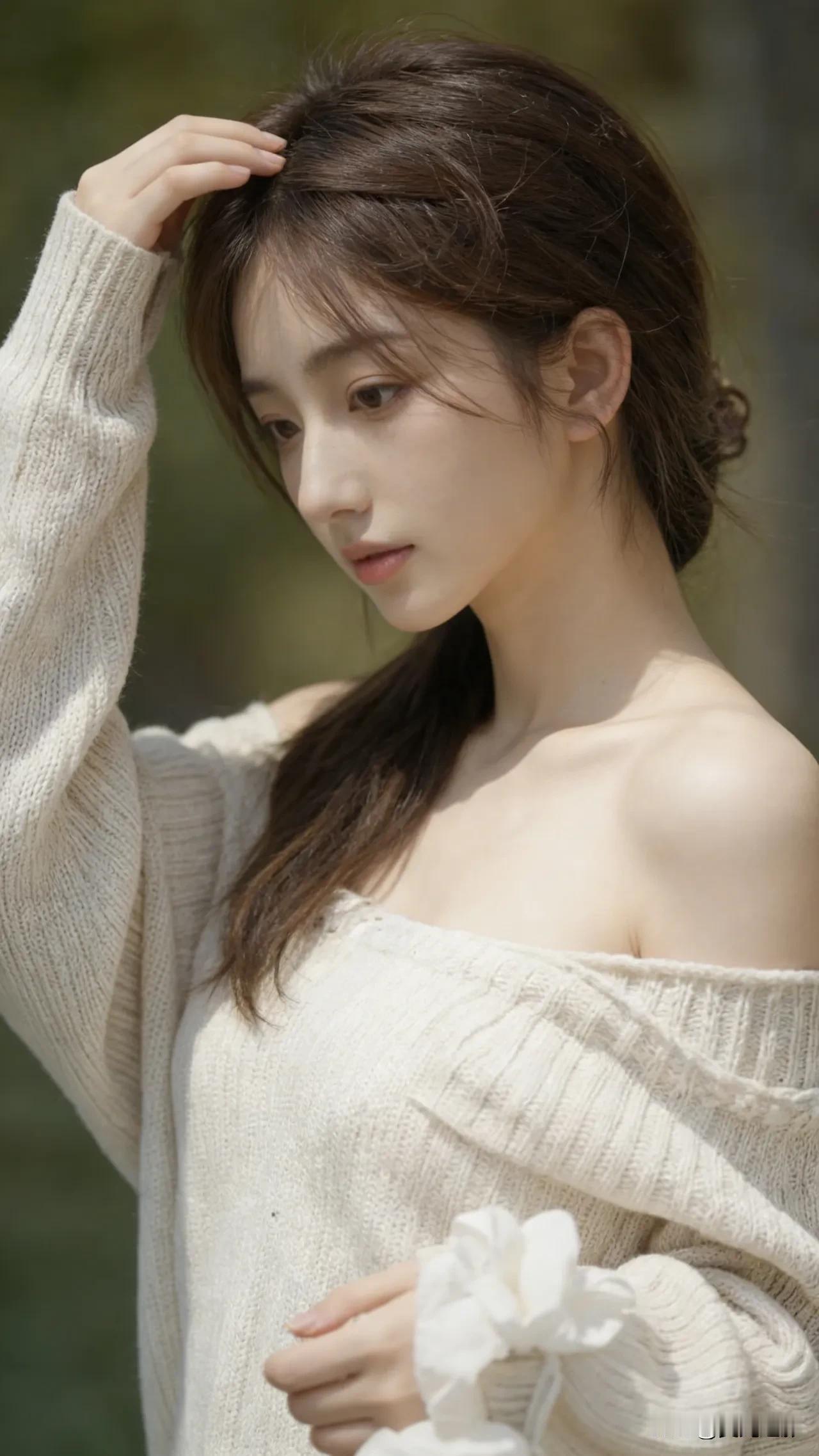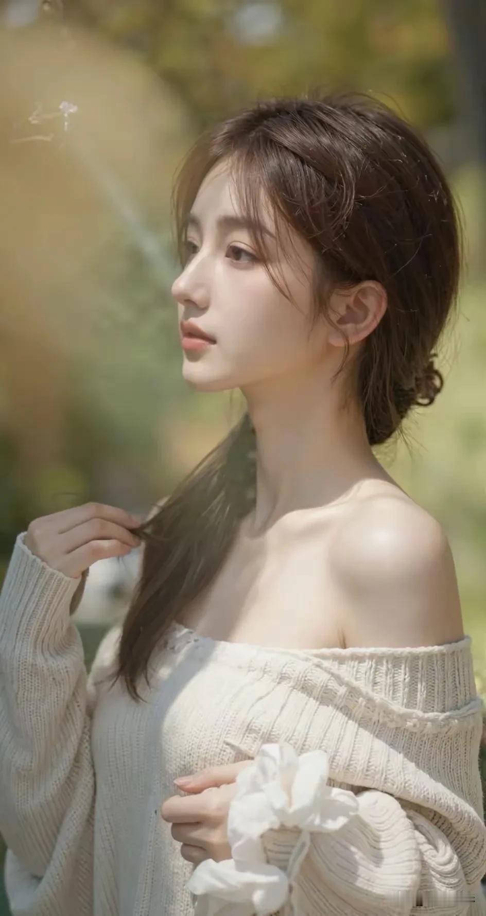 光之影&AI 阳光洒落,温柔少女,轻抚发丝,岁月静好。 温柔美少女 阳光白裙少女