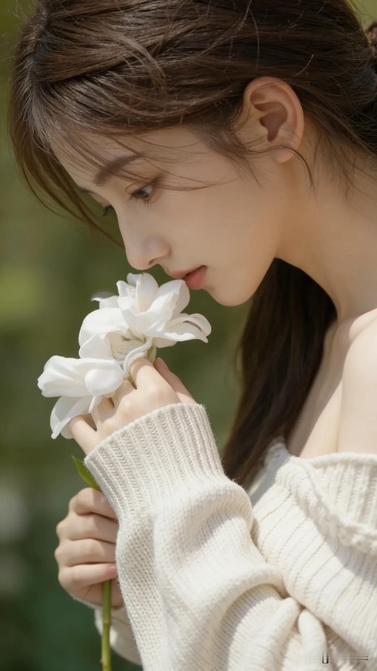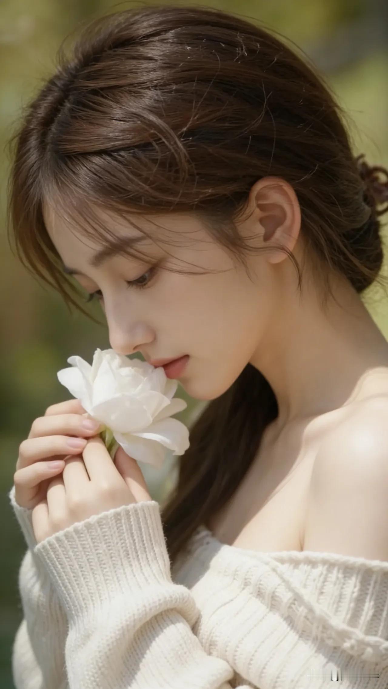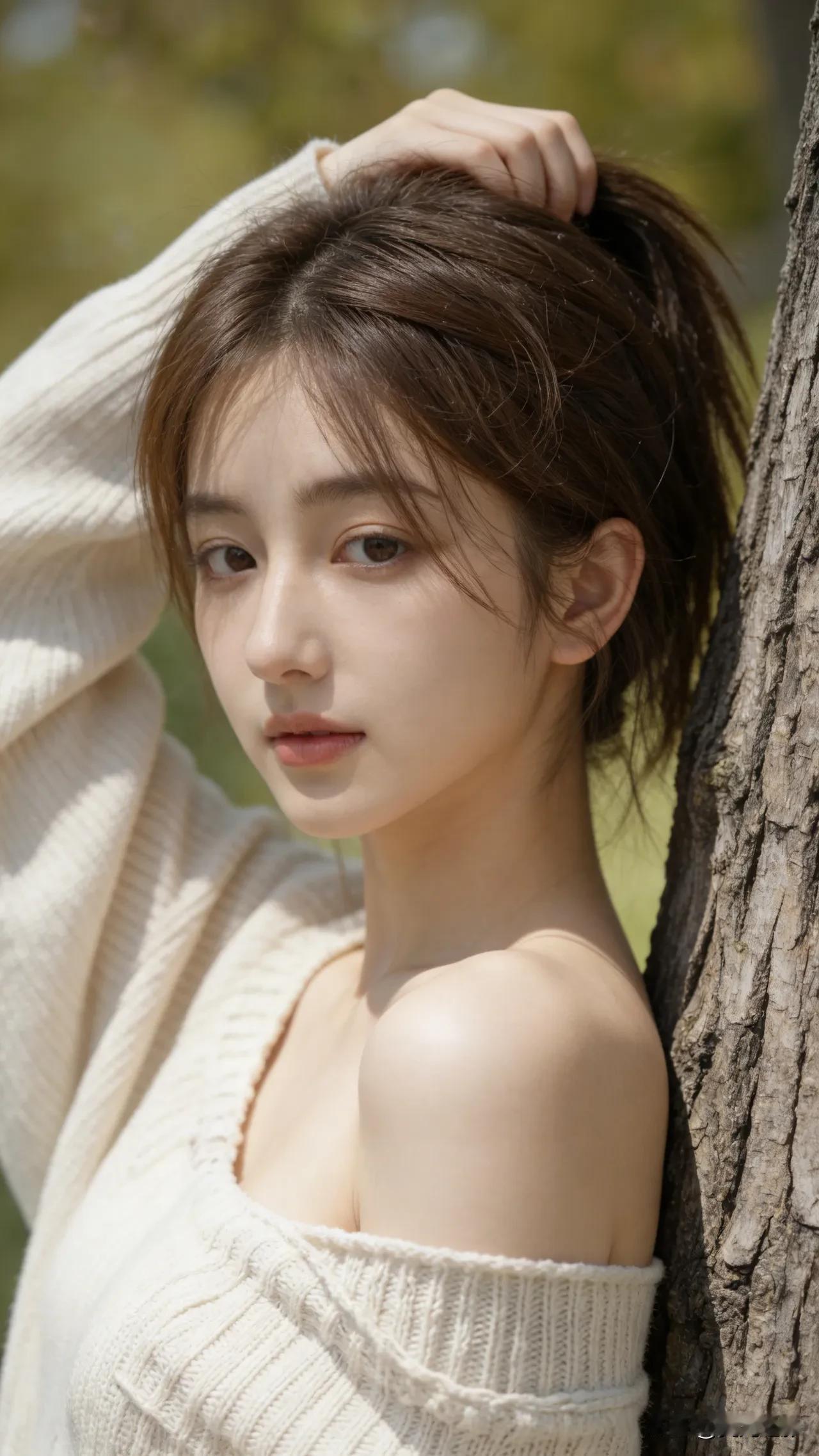 光之影&AI 阳光洒落,温柔少女,轻抚发丝,岁月静好。 温柔美少女 阳光白裙少女