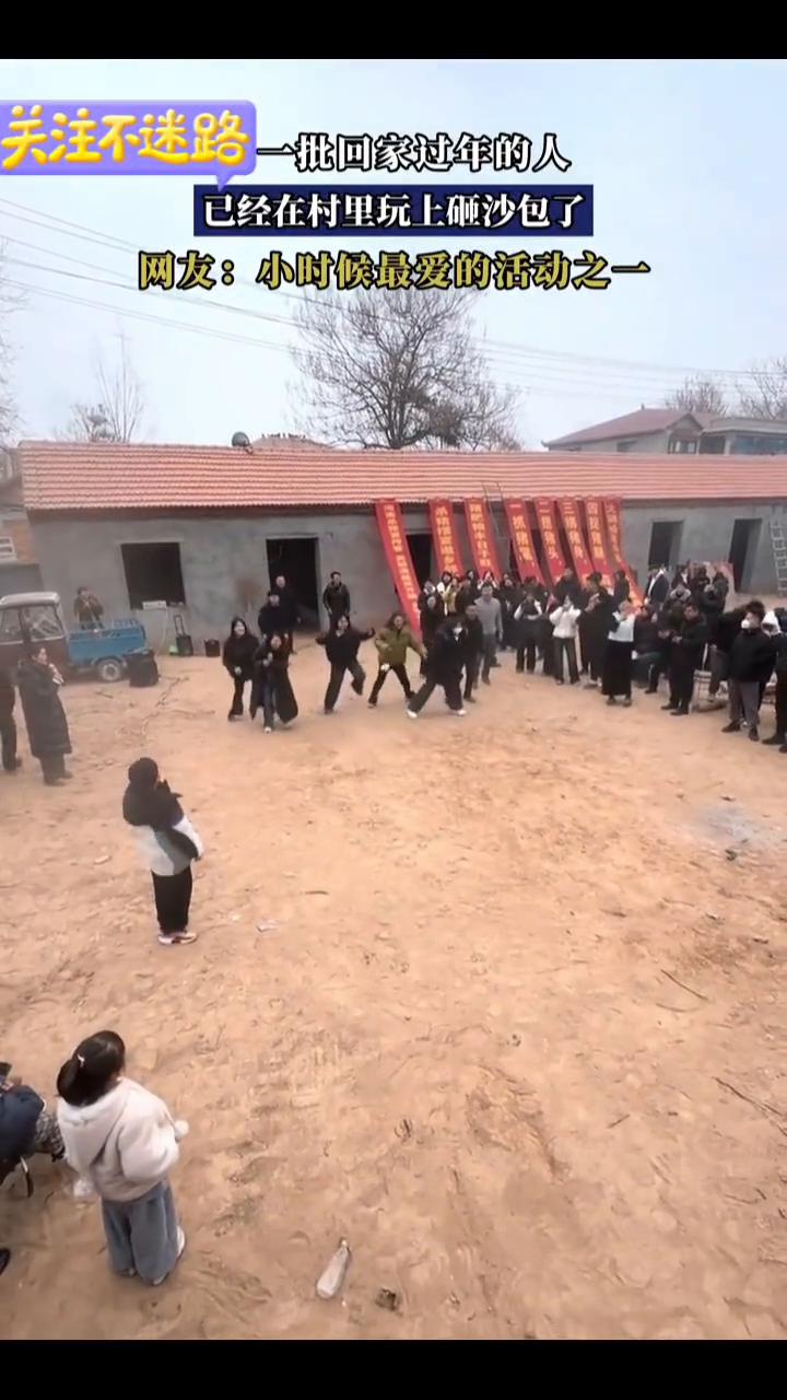一批回家过年的人已经在村里玩上砸沙包了。 网友:小时候最爱的活动之一。 第一批回家过年的人已经在村里玩上砸沙包了。