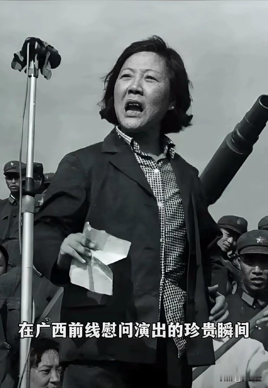 这张黑白老照片,是著名京剧表演艺术家,在广西前线慰问演出的珍贵瞬间,她身着朴素外套,站在话筒前高亢演唱,激昂的唱腔穿透了战地的风,让坚守前线的战士们听得热泪盈眶,你知道她是谁吗?