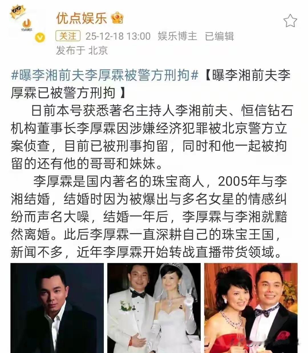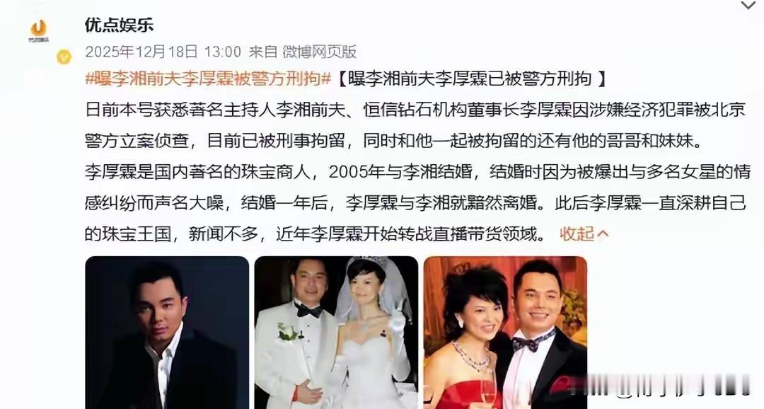 李湘“消失”的深层隐喻:当萝卜被拔起,我们是否看清了底下的泥? 互联网的记忆或许只有七秒,但互联网的“清算”往往只在一夜之间。 2026年1月16日,那个曾经高调炫耀富养女儿、在直播间里霸气喊话的李湘,突然遭遇全网禁言。这场变故来得猝不及防,却又似乎在冥冥之中早有预示。就在不到一个月前,她的前夫、著名钻石大亨李厚霖因涉嫌重大经济犯罪被刑拘。 正所谓“拔出萝卜带出泥”,当这棵根深叶茂的“萝卜”被连根拔起时,裹挟在根须上的,不仅是令人触目惊心的淤泥,还有关于资本、流量以及那个曾被视为“人生赢家”的小女孩王诗龄的种种疑问。 一、 前夫的落马:多米诺骨牌的第一张 李厚霖被抓,是这场风暴的起点。作为曾经的“钻石大亨”,他在商界的沉浮一直是谜。如今刑事拘留的铁窗落下,揭开的或许只是冰山一角。 而李湘的全网被封,时间点太过微妙。虽然目前官方并未详尽说明封禁的具体原因与李厚霖案件是否有直接的法律牵连,但在大众的认知逻辑里,这绝非巧合。这种“夫妻档(虽然离异)”接连倒下的现象,往往映射出某种利益共同体的崩塌。当曾经依靠资本堆砌起来的商业版图出现裂痕,依附于其上的网红光环和话语权,自然也就随之散去。 这给所有依靠资本背景活跃在公众视野中的人敲响了警钟:法律的红线,从不因为你是明星,也不因为你曾有过辉煌的背景而网开一面。 二、 王诗龄身份之疑:富养是爱,还是掩护? 随着李湘的失语,舆论的矛头不可避免地指向了王诗龄。这个从小就在镁光灯下长大的女孩,一直是李湘“富养教育”的活招牌。然而,当大人的世界崩塌,孩子的世界也随之被重新审视。 外界开始质疑王诗龄的“身份”,这不仅仅是对她国籍、学历的探究,更深层次的是对她财富来源合法性的拷问。那些曾经让无数人羡慕的顶级奢侈品、豪宅、名校资源,在李厚霖涉案、李湘被封的背景下,显得格外刺眼。 人们不禁要问:支撑这种顶级“富养”的巨额资金,真的都干净吗?如果这背后存在着某种灰色的利益输送,那么王诗龄所谓的“公主生活”,无异于建立在沙滩上的城堡,潮水一退,便荡然无存。 对于王诗龄来说,这是一场残酷的“成人礼”。无论她是否知情,她的人生轨迹都已经因为父辈的过错而被强行改变。这也再次提醒我们:父母给孩子最好的礼物,从来不是挥金如土的物质生活,而是一个清清白白、问心无愧的出身。 三、 流量的反噬:炫富时代的终结 李湘的“翻车”,在某种程度上,也是一个时代的注脚。 过去几年,我们见证了“炫富流量”的野蛮生长。李湘是其中的佼佼者,她毫不避讳地展示财富,将消费主义推向了极致。这种风格虽然饱受争议,却确实收割了巨大的流量和关注。 然而,时过境迁。当下的互联网环境,公众对于贫富差距的敏感度日益提升,对于特权和不公的容忍度越来越低。当社会的天平开始倾斜,监管的大棒必然会挥向那些不仅高调、而且可能在根基上存在问题的公众人物。 李湘的遭遇告诉我们,流量是一把双刃剑。当你利用流量放大欲望、甚至试图掩盖某些真相时,最终流量也会成为反噬你的巨浪。 四、唯有清白,方能行稳致远 “拔出萝卜带出泥”,这句俗语虽然粗俗,却道出了某种因果规律。 李湘和王诗龄的遭遇,看似是个体的悲剧,实则是对整个社会风气的一次警示。对于公众人物而言,才艺和人设固然重要,但德行与合法才是立足之本。任何试图凌驾于规则之上的侥幸心理,最终都将付出沉重的代价。 对于我们围观者而言,除了吃瓜,或许更应看清:在这个变幻莫测的时代,真正的安全感,从来不是来自于名牌包包和钻石,而是来自于脚踏实地的奋斗和干干净净的良心。 李湘的账号关了,但关于财富、教育和责任的讨论,才刚刚开始。