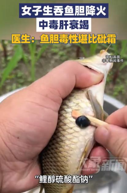 “悲剧还是发生了!”近日,南京,一女子在家杀鱼时,突然想起“良药苦口”的老话,于是竟萌生了吞鱼胆的“养生”想法,结果第二天全身皮肤发黄、腹痛不止,送医后确诊为急性肝、肾损伤!医生:不能瞎吃! 两天后,王阿姨躺在南京市第二医院病床上,全身蜡黄,血液净化机正在过滤她体内的毒素。 为肝病科副主任医师指着化验单说:“转氨酶近4000U/L,超标近百倍,你的肝脏正在大面积坏死。” 不确定东西真的不能瞎吃啊,病从口入不是开玩笑的。 事情还得从那天早上说起,那天王阿姨从菜场拎回一条活蹦乱跳的草鱼。 在刮鳞、剖腹时,她捏着鱼胆犹豫了:“老人常说苦的东西能清热,看着这鱼胆黑得发亮,是不是个宝贝?” 正是这个念头让她做出了惊人举动,她把鱼胆扯下,用水冲了冲,二话不说直接吞服。 那苦味从喉咙蔓延到胃里,她强忍着喝了几口水,还安慰自己:“良药苦口,明天眼睛肯定更亮。” 听过吃蛇胆的这吃鱼胆,还直接吞的还真少见。 起初的2小时风平浪静。 王阿姨甚至向邻居夸口:“我今天吃了颗天然药丸!” 但很快,腹部开始隐隐作痛,接着是剧烈呕吐和腹泻。 当时她以为是肠胃炎,吃了点常备药就早早睡下。 第二天清晨,儿子推开房门吓了一跳:母亲整个人像被染黄了,眼白变成琥珀色,连小便都是浓茶色。 于是全家立刻驱车赶往医院,而此时的王阿姨已经虚弱得需要搀扶才能行走。 急诊室里,医生发现王阿姨的总胆红素超标6倍,凝血功能异常。 而且更可怕的是尿液检测显示,她几乎要无尿了,这是急性肾衰竭的标志。 鱼胆中的鲤醇硫酸酯钠毒素,正像强盗一样攻击她的细胞。 这种毒素不被高温或酒精破坏,能直接摧毁细胞膜。 肝细胞成片死亡,肾脏的过滤功能瘫痪,毒素随着血液流动,下一步可能损伤心脏和大脑。 “毒素就像硫酸,”医生向家属解释,“所到之处,细胞全部坏死。 我们是在和死神抢时间。 之后王阿姨被直接推入血液净化室。 护士在她颈部做了临时透析管,暗红色的血液被引出体外,通过过滤器去除毒素,再输回体内。 每次治疗持续4小时,需要连续多日进行。 “血液净化不是解毒,而是代替肾脏工作,防止其他器官进一步受损。” 主治医生盯着监护仪说。 在显示屏上,王阿姨的转氨酶数值从4000缓慢下降到3000,这说明肝脏的破坏速度在减缓。 最危险的是第三个夜晚。 当时王阿姨出现呼吸困难,血氧饱和度骤降到85%。 医疗团队立即给她戴上面罩吸氧,调整透析参数,直到凌晨情况才稳定下来。 在病房外,医生说起一个规律:每年春节前都是鱼胆中毒高发期,因为“很多人觉得鱼胆是年货的一部分,能保健”。 其实这个在《本草纲目》确实记载青鱼胆可入药,但中医使用时需要经过特殊炮制,并与其他药材配伍。 而普通百姓直接生吞,相当于把浓缩毒素灌进身体。 更令人担忧的是,鱼胆中毒有6-12小时的潜伏期,患者常误以为是普通吃坏肚子而延误治疗。 这个王阿姨就医时已超过24小时,错过了洗胃排毒的最佳时机。 类似的偏方悲剧层出不穷:有人生吞蛇胆感染寄生虫,有人生吃泥鳅“祛湿”导致肠道穿孔。 医生叹息:“偏方最大的毒,是让人轻视它的毒性。” 鱼胆中毒没有特效解药,预防是关键。 在处理鱼时应直接丢弃鱼胆,若不慎弄破污染鱼肉,最好将沾染部分切掉丢弃。 出现可疑症状后必须立即告知医生食用过鱼胆。 而鱼胆中毒的黄金救治时间是6小时内,可通过洗胃清除毒物。 值得注意的是,草鱼、鲤鱼、青鱼、鲫鱼等常见淡水鱼的鱼胆都有毒。 而且鱼体重越大,鱼胆毒性通常越强。 对于民间流传的各类“养生偏方”,专家建议咨询专业医生,不要盲目尝试。 身体不适时应前往正规医院就诊。 要相信科学,以前是没那条件才选择偏方,现在医学发达了,还是稳妥点。 三周后,王阿姨出院时留下永久性肾损伤,需要长期复查。 她把这段经历编成顺口溜提醒老友:“鱼胆非良药,入肚如吞刀;偏方莫轻信,科学最可靠。” 菜场的鱼摊前,她总会多嘴提醒买鱼人:“别信什么苦胆养生,我这条老命差点交代在它手上。” 而她的病历,被岳枝医生收录进健康教育课件,那是一份用痛苦换来的生命警示。 真正的良药,从来不是苦味的迷信,而是对自然规律的敬畏。那些代代相传的“老话”,更需要科学这把筛子淘洗真金。 真正的健康智慧,不在于盲目追随各种偏方,而在于用科学知识武装自己,在专业指导下做出明智选择。 毕竟,生命只有一次,不值得为任何未经证实的“养生偏方”冒险。 主要信源:(“悲剧还是发生了!”近日,南京,一女子在家杀鱼时,突然想起“良药苦口”的老话,于的最新相关信息——环球网)