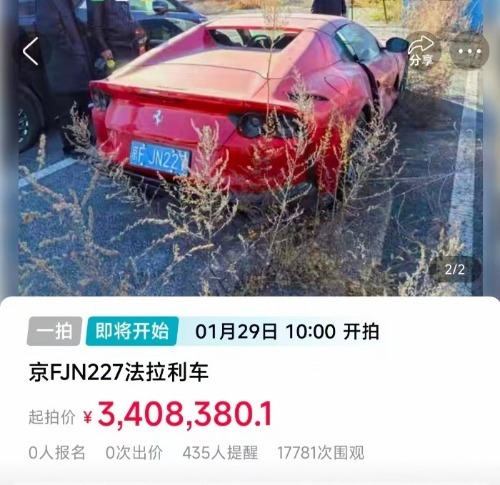 【#百亿非法集资案扣押法拉利即将开拍#,起拍价逾340万元】#京FJN227法拉