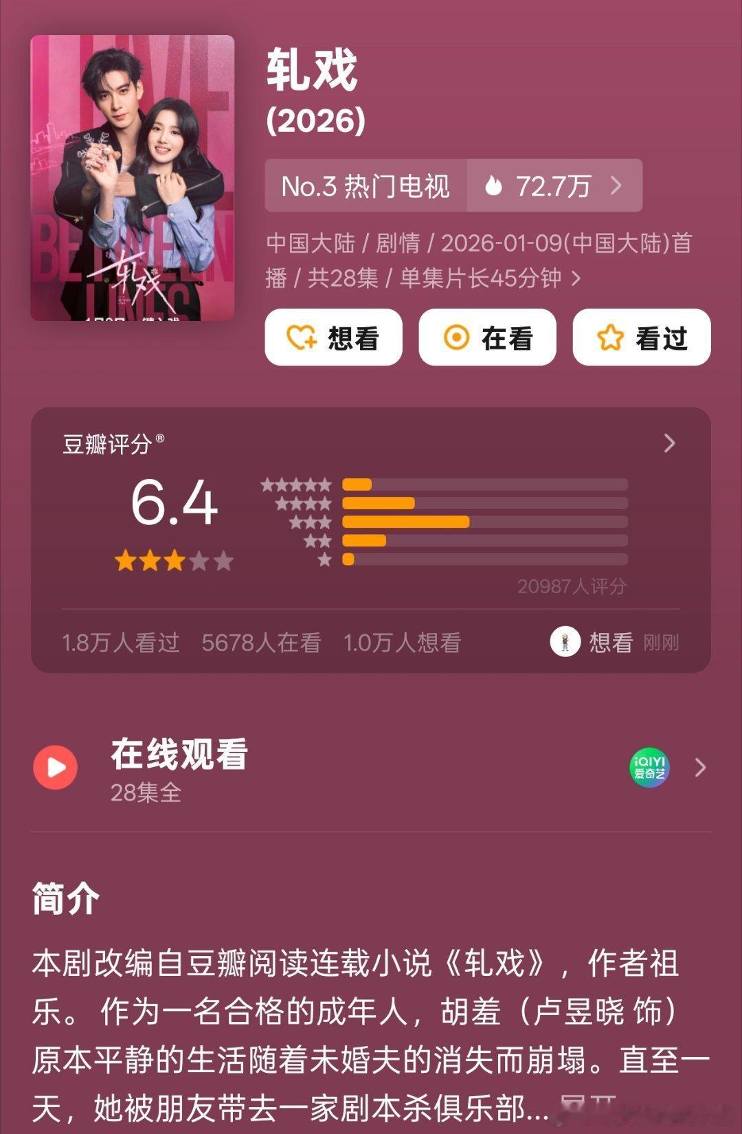 陈星旭、卢昱晓、代旭轧戏豆瓣6.4分