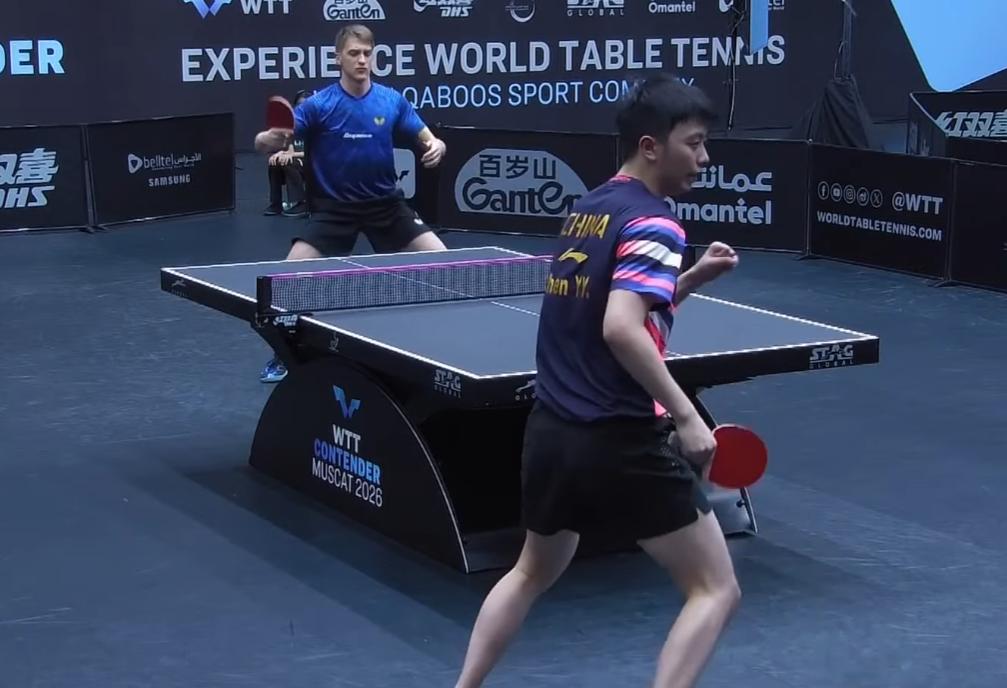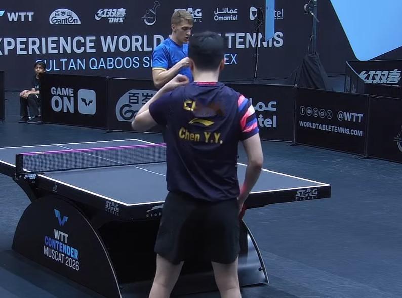 哈哈,欺负安东没有教练! 第一局 陈垣宇6:11输了 第二局 陈垣宇4:1领先, 结果被安东连赢4球, 5:4反超, 陈垣宇叫了暂停, 刘恒给他指导, 安东没有教练, 只能一个人坐在那里喝水。 暂停回来之后, 陈垣宇果然发挥出色, 10:6拿到局点, 虽然被安东追到了10;10 但是陈垣宇还是12;10扳平比分。