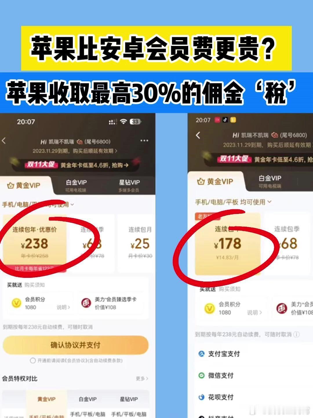 苹果用户的天塌了关于苹果税这事吧,我之前就提醒过大家,App里面充会员啥的,能别用iPhone就别用iPhone充,因为你付出去的钱果子是要抽分成的,所以这部分钱会转嫁给咱们用户,对比后你就会发现安卓机上充明显更便宜,你们有注意过这问题吗?