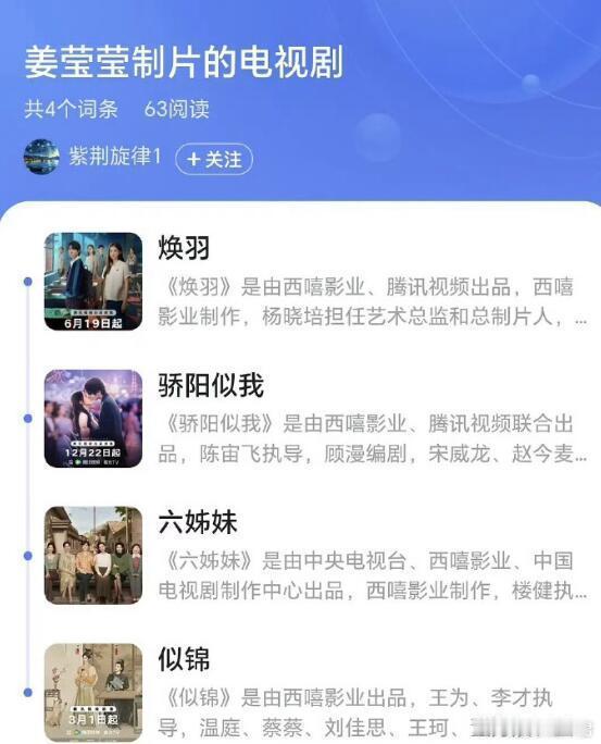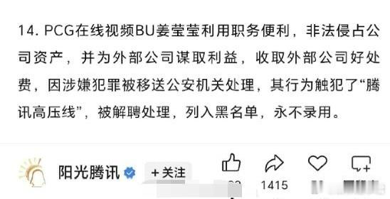 制片人姜莹莹被移送公安机关鹅厂反腐把制片人姜莹莹送进去了,称其利用职务之便,非法侵占公司财产,并为外部公司谋取利益,收取好处费。她参与制片工作的影视作品多是西嘻影业的,其中包括《焕羽》、《六姊妹》、《似锦》以及《骄阳似我》.
