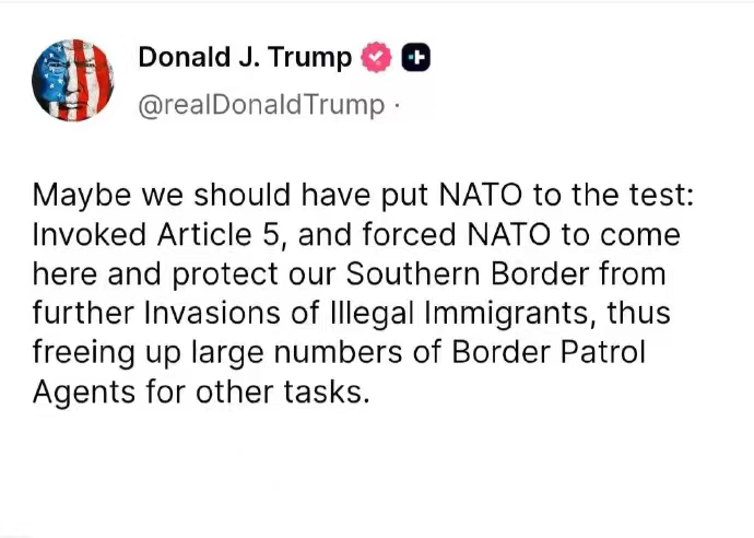 特朗普想让北约派兵帮他守边境他的想法真多。看起来他这次真恨背影这些国际,要整活了
