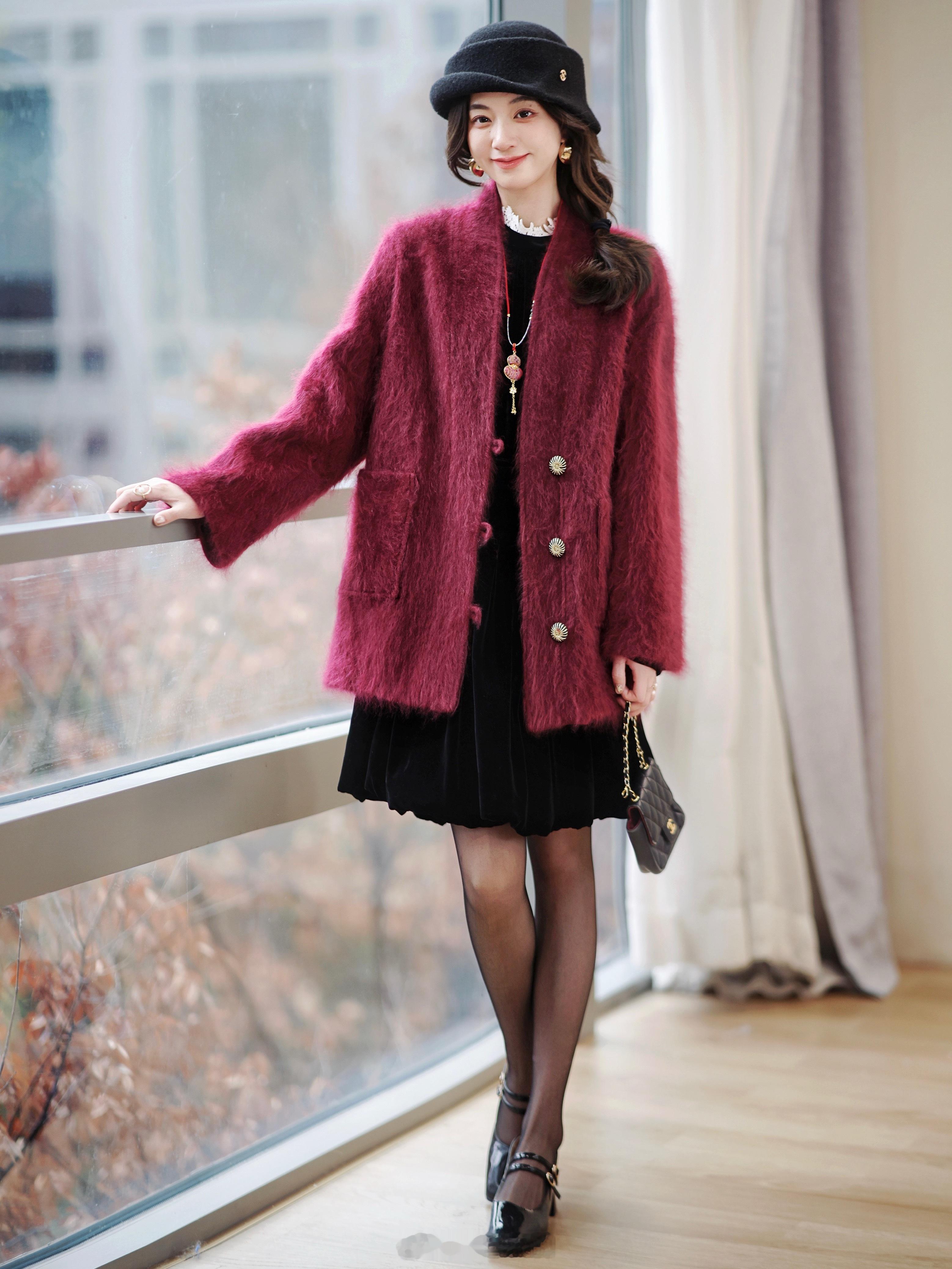 🧨新年氛围感 还得是红色吧~100羊绒+100真丝里+拉绒工艺 温暖轻盈显白这大衣!本粒预定啦!