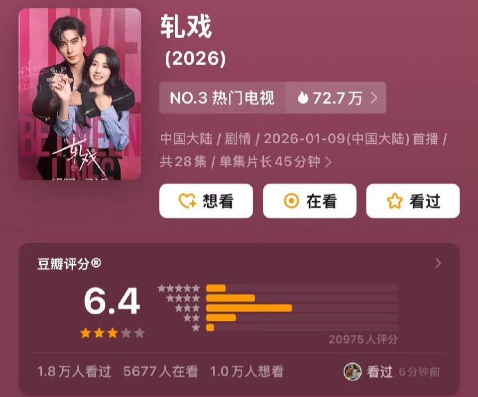 轧戏豆瓣开分6.4,1.9开播的,猜一下屁事会氵到多久开分