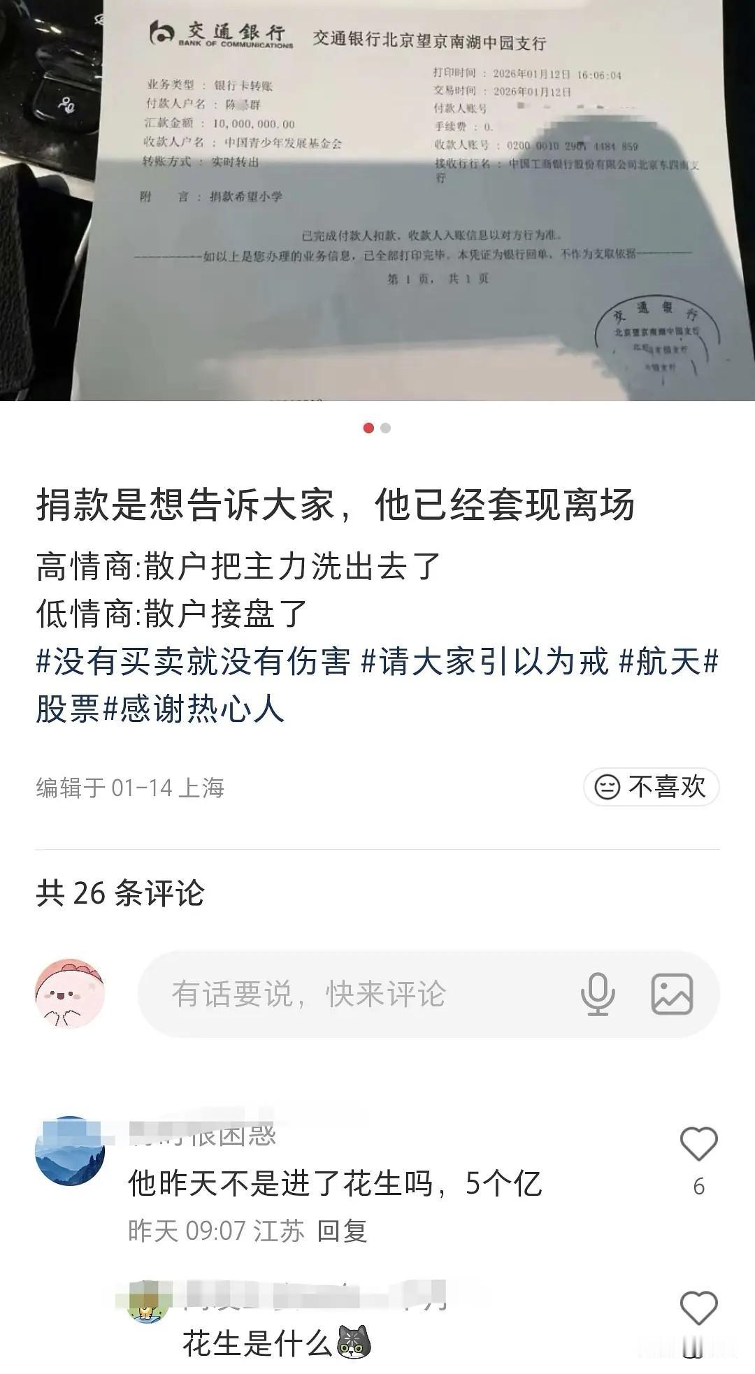 他捐了就等于股民捐了陈小群 股市点评 上海股民 股民盈利 股民卖飞 公司捐款 股民人。。。 都别捐款了 茅台股民