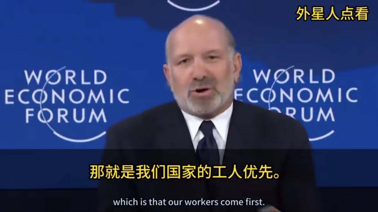 美国商务部长卢特尼克表示:“我们正在达沃斯参加世界经济论坛,特朗普政府和我本人,我们来这里是为了阐明一个非常清晰的观点,‘全球化辜负了西方和美国‘,这是一项‘失败的政策’,这就是世界经济论坛所代表的,也就是出口、离岸外包、远距离外包,在全世界寻找最廉价的劳动力,并认为世界因此而更美好,事实是,它把美国甩在了后面,它把美国的工人们甩在了后面,而我们想说的是,‘美国优先’是一个不同的模式,一个我们鼓励其他国家也去考虑的模式,那就是我们国家的工人优先,我们可以制定对本国工人有利的政策,主权就是你的边界,你有权拥有边界,你不应该把你的药品生产外包出去,你不应该把你的半导体外包出去,你不应该将整个工业基础外包,任其在你的脚下被掏空,在那些关乎你主权根本的事务上,你绝不应该依赖任何其他国家,而且,如果你非要依赖谁,那最好是你们最铁的盟友(美国),明白吗?所以,这是一种不同的思维方式,它与世界经济论坛的理念完全不同,我眼中的世界经济论坛,不是立于中间的旗杆,事实上,他们就是那面旗帜,风往哪边吹,它就往哪边倒,‘你们应该发展太阳能,应该发展风能”,你为什么要发展太阳能和风能?欧洲为什么会同意在2030年实现净零排放?要知道他们自己都造不出电池,他们自己不生产电池,所以,如果他们要在2030年实现目标,那么他们就等同于决定了要屈从于生产电池的中国。”