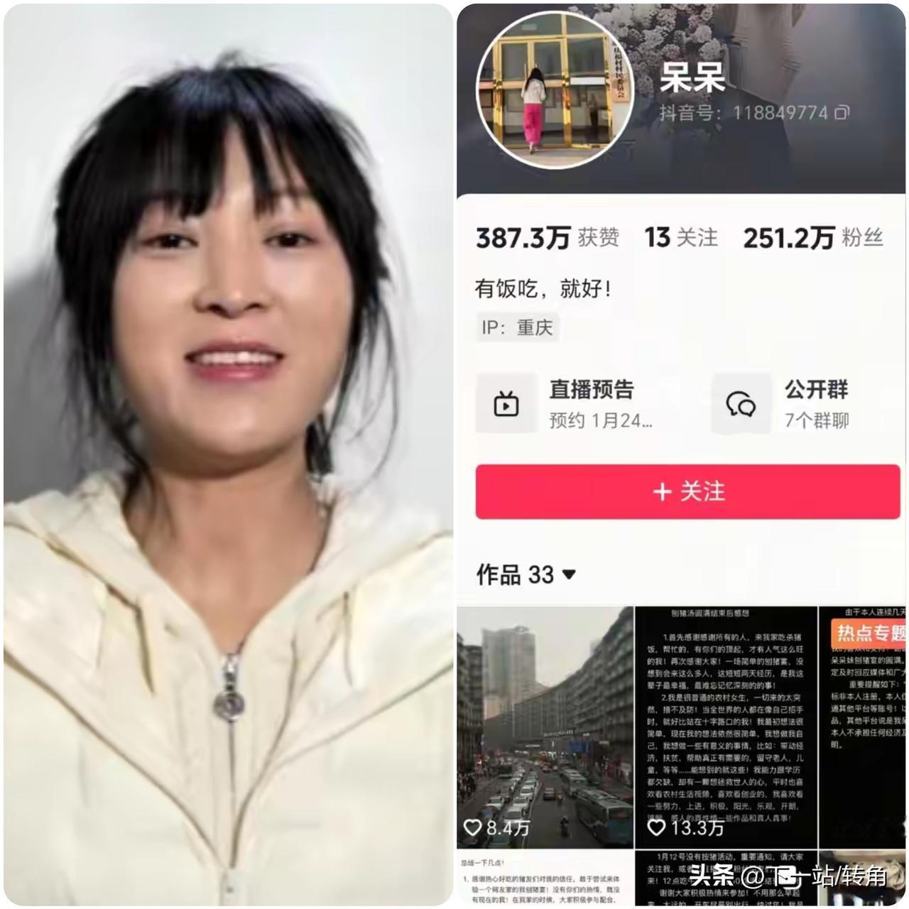 呆呆1月24日直播!🔥 这回妥妥又要霸屏了! 主页只预告直播,字少!藏着悬念更吊胃口!呆呆爆火后拒带货守初心,还成了合川刨猪汤文化大使,背后的清醒太圈粉! 这次直播消息一出,网友们又热闹了,盲猜惊喜,是带逛文峰古街、品合川桃片?还是分享农家年味?或是沉浸式刨猪汤盛宴?毕竟她的乡村烟火气太治愈了! 你们觉得呆呆这次直播又解锁啥惊喜?评论区唠起来! 合川呆呆妹 合川呆呆 呆呆开直播 吃呆呆家刨汤饭 呆呆刨猪宴