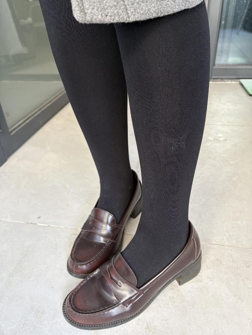 穿了将近一个冬天的打底裤,刚发现脚踝处竟然刺绣有一个可爱的小蝴蝶……裤袜 黑裤袜