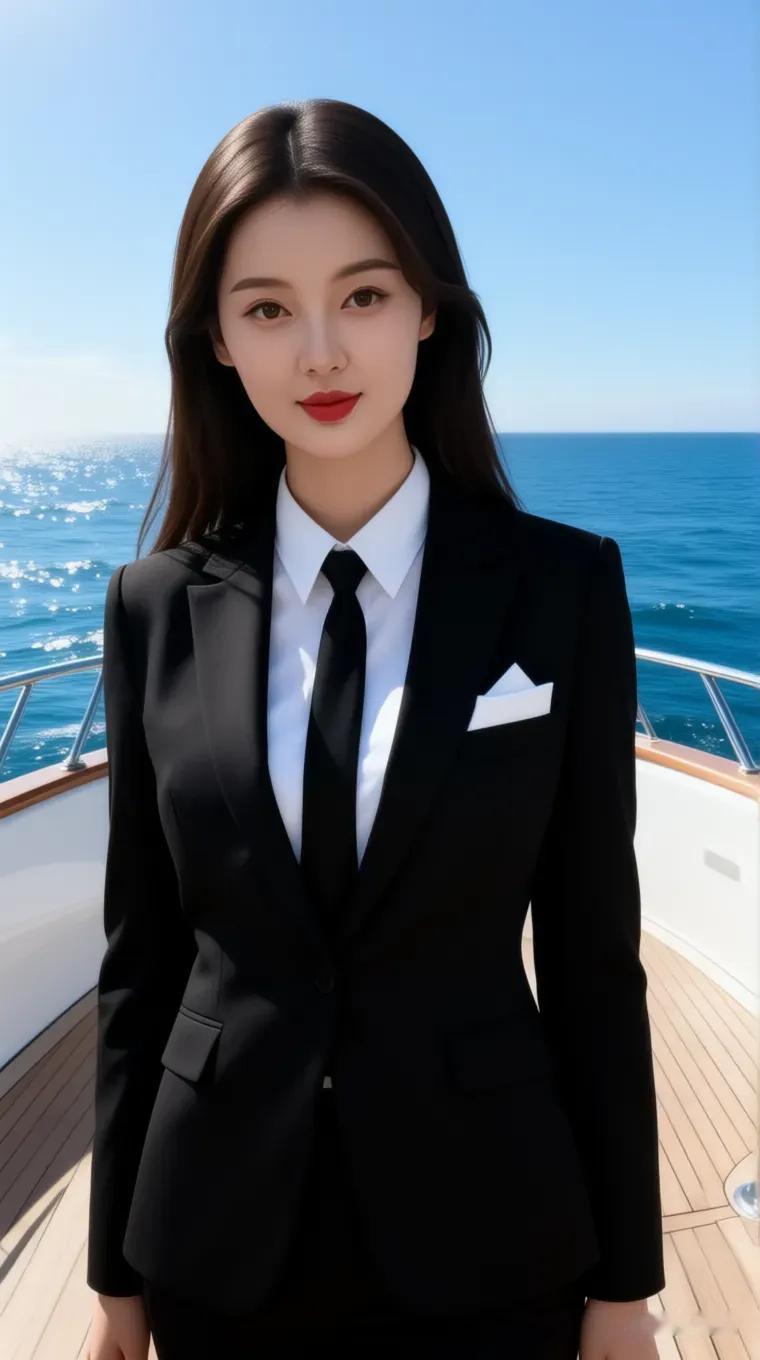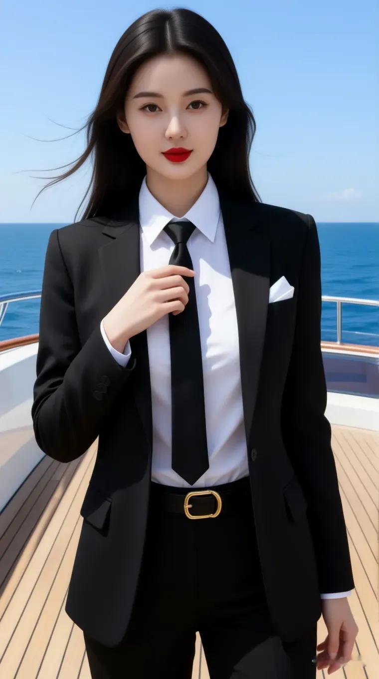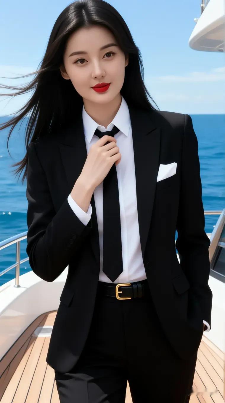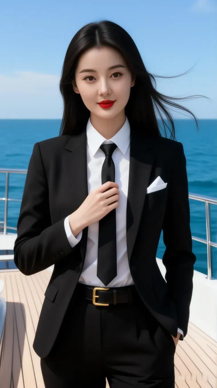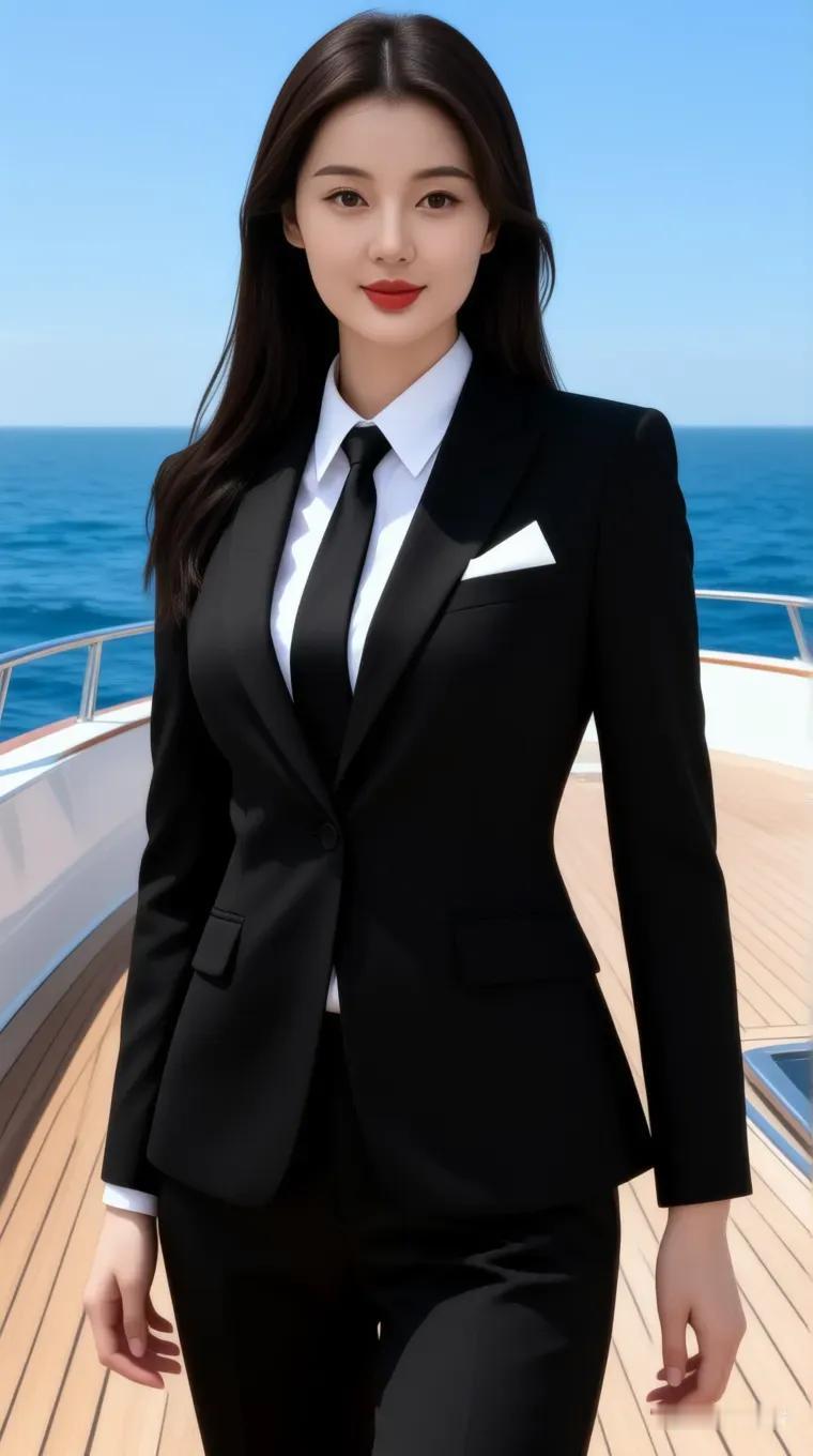 优雅的海边商务风,黑色西装搭配白色衬衫,尽显职场魅力!