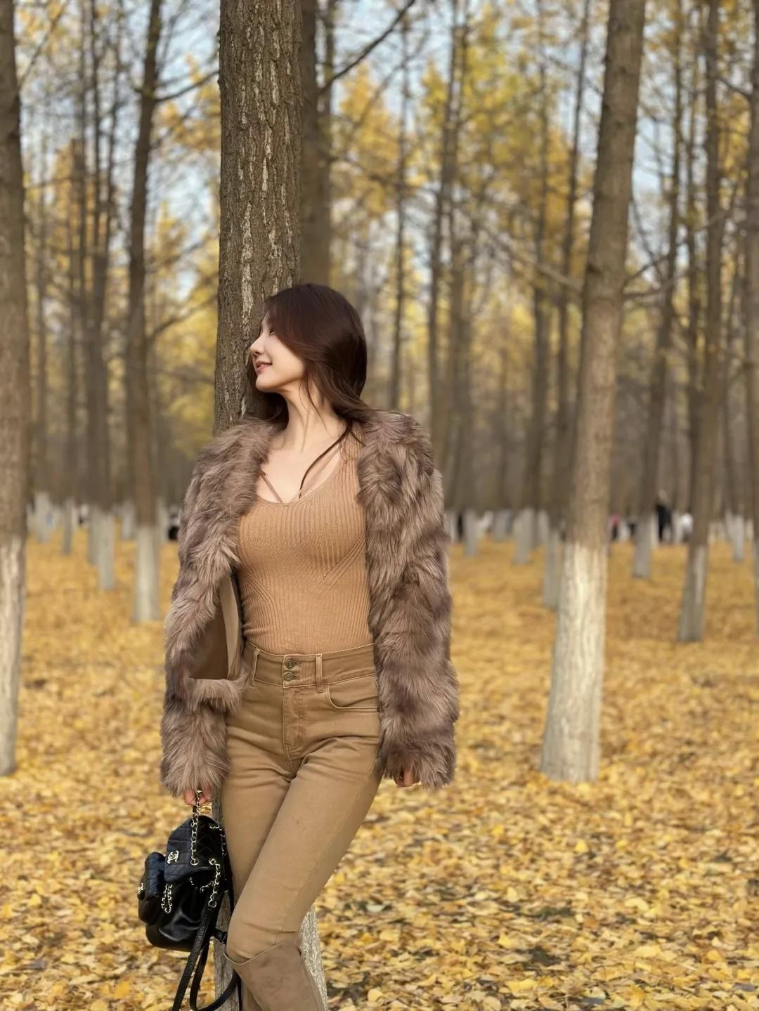 秋日穿搭风格系列/秋日公园写真,美,一片金黄色