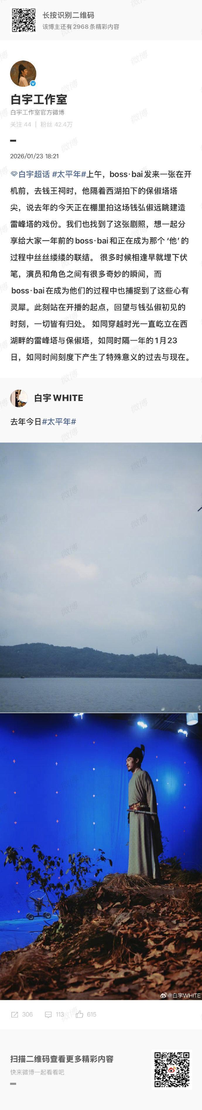 白宇一年前看这个塔一年后看那个塔 被白宇的时光呼应狠狠拿捏!开机前拍保俶塔,一年后开播当日对应去年拍摄雷峰塔的时刻。双塔见证演员与角色的跨次元奔赴,深情又浪漫。 00后新生代热点捕捉计划