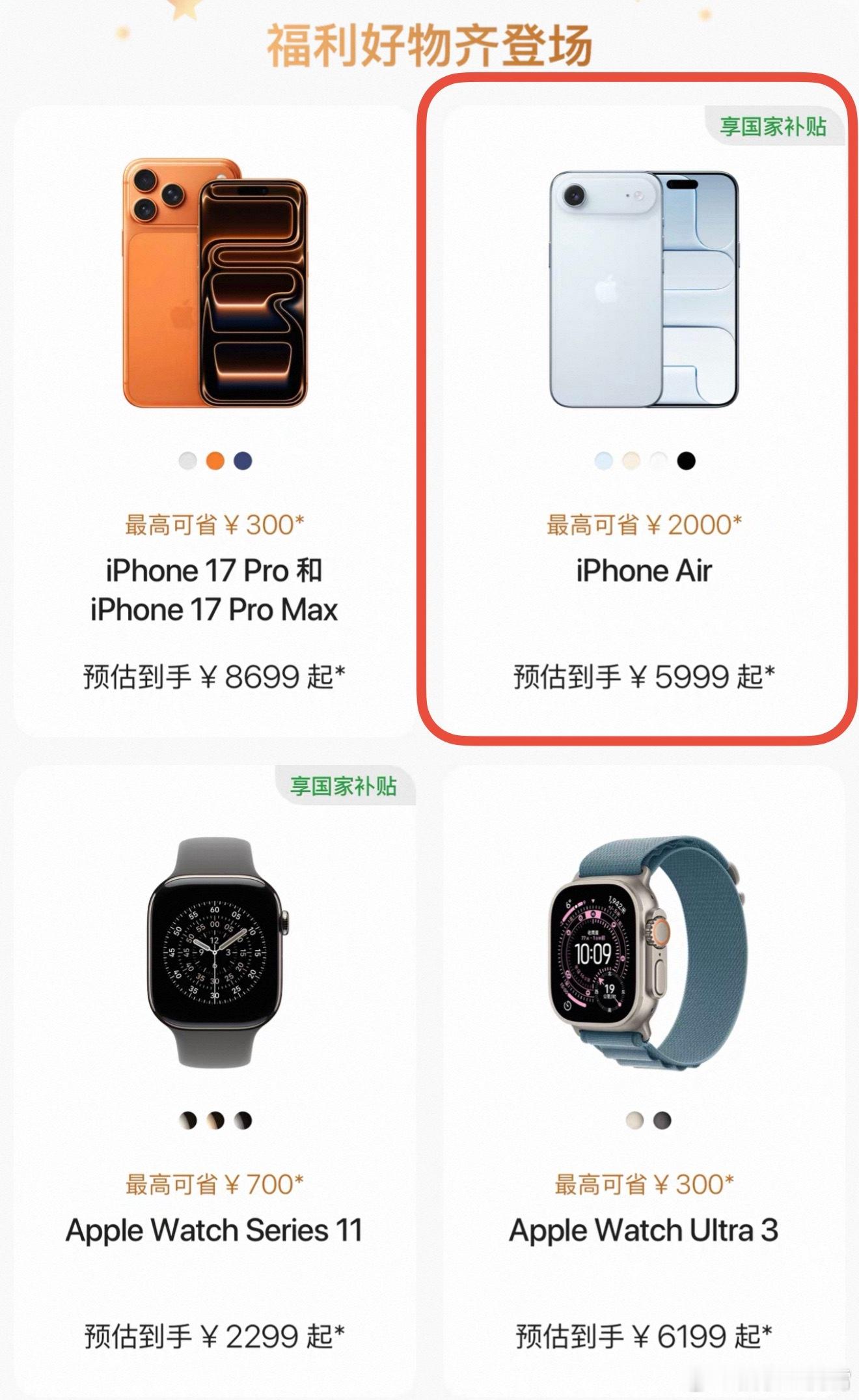 我擦,iPhone Air竟然降价了,官方直降2000元,叠加上500元国补,四舍五入相当于降了2500元,最终价格来到5499元,重点是这手机才卖了3个月就大跳水,原价买的朋友不就尴尬了,当然现在降到5499确实还可以,这价格你们买不买