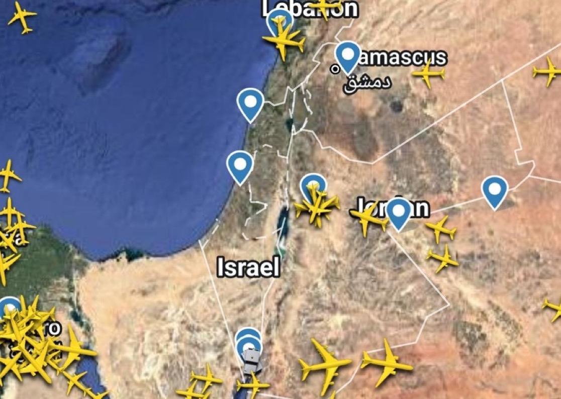 突发新闻: 由于与伊朗的紧张局势加剧,航空公司纷纷避开以色列领空,目前以色列领空空荡荡。