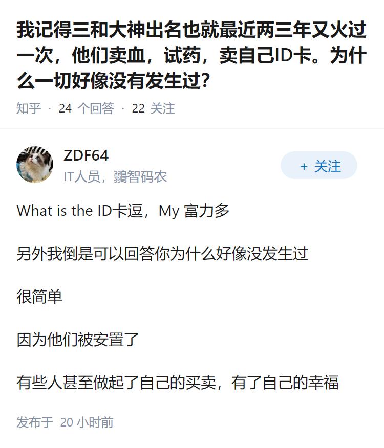 我记得三和大神出名也就最近两三年又火过一次,他们卖血,试药,卖自己ID卡。为什么一切好像没有发生过?