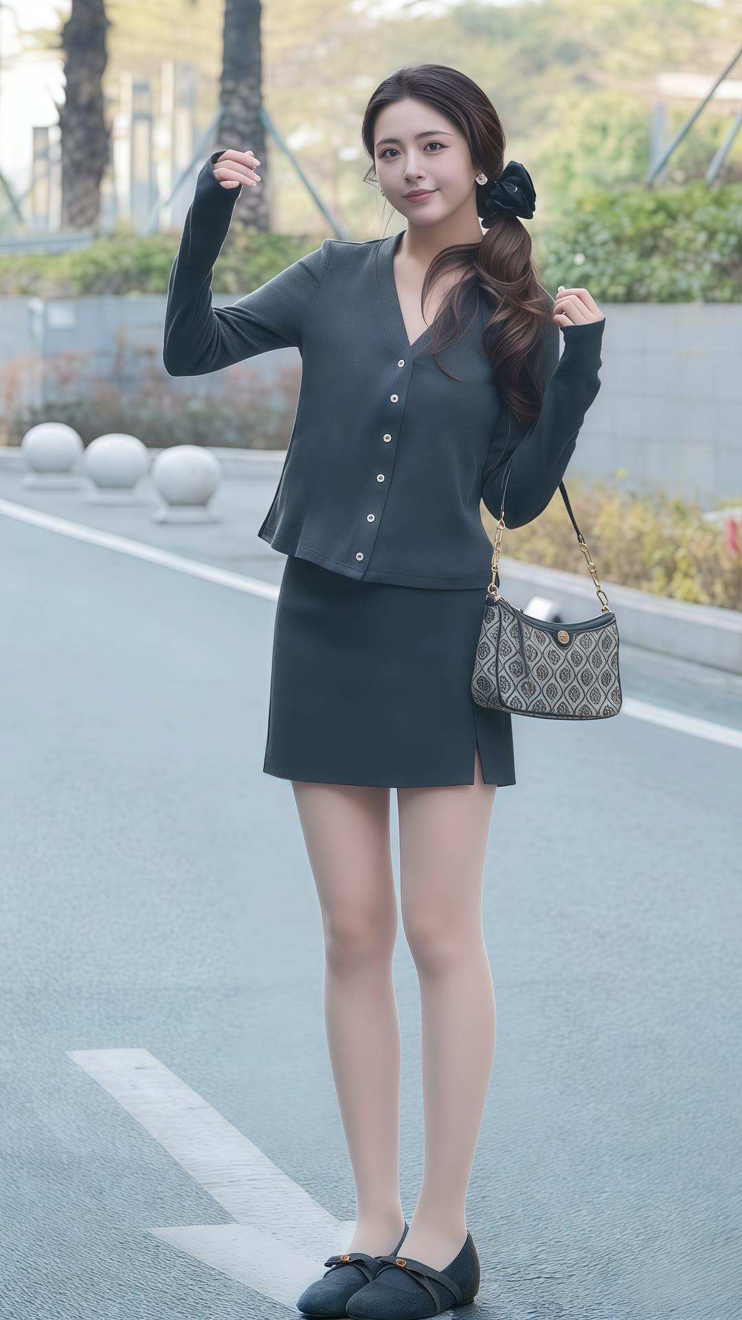 优雅气质穿搭,黑色套装搭配精致手袋,都市女性风范。