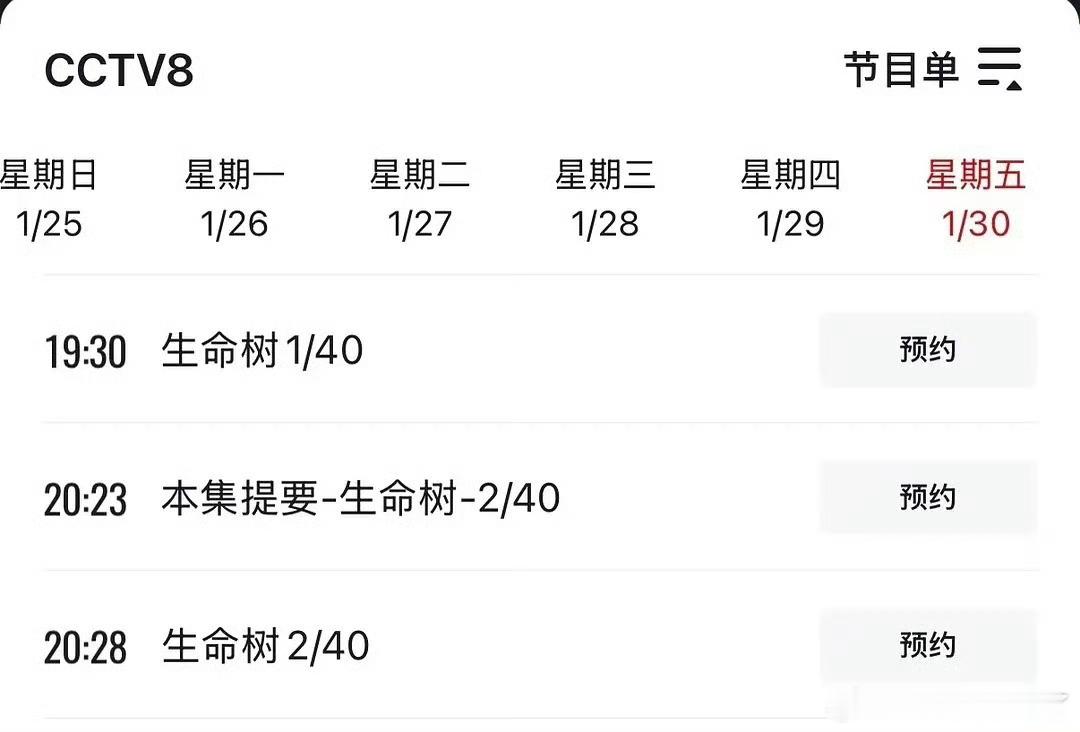 杨紫生命树央8排播出了,1月30日起央8每晚黄金档两集连播!坐等白菊警官
