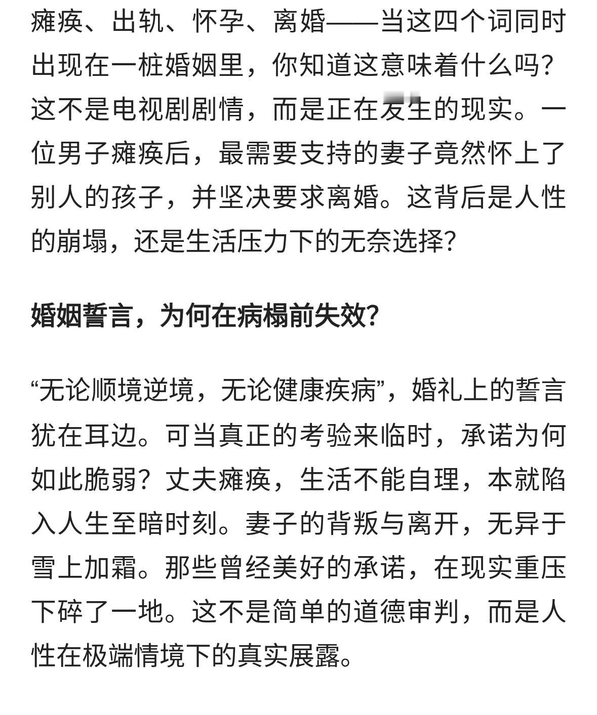 瘫痪丈夫卧床2年,妻子突说“我怀孕了,孩子不是你的”