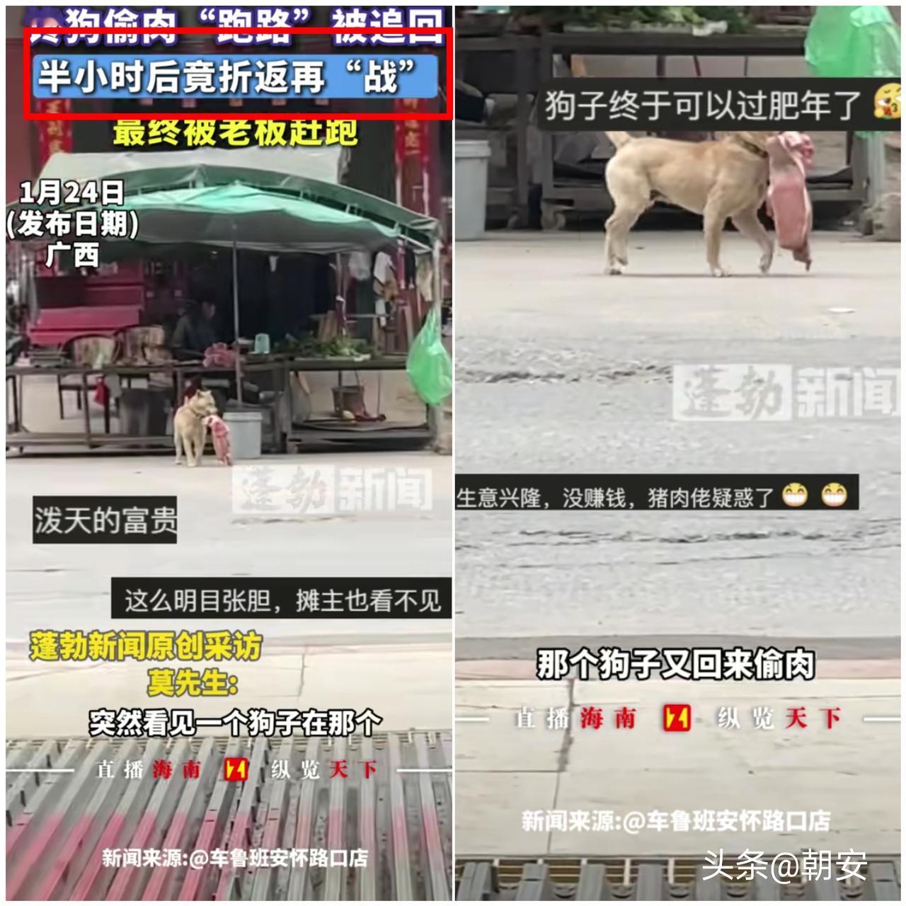 “泼天富贵没把握住”! 广西这只狗,简直把“到手的肉飞了”演到了极致! 在街上趁老板不注意,叼走一大块猪肉,眼看就要实现“肉自由”,结果被路人提醒,老板追上去把肉抢了回来。 本以为狗会就此收手,没想到半小时后又回来“二进宫”,直接被老板赶跑,彻底没机会了。 对狗来说,那块肉就是天降横财,可惜没把握住第一次,还贪心回头,注定竹篮打水。 其实人也一样,机会来了抓不住,再想回头就难了,贪心只会让到手的好处彻底泡汤。 你身边有没有这种“到手的好处没抓住,还贪心再试结果更惨”的事? 评论区聊聊~狗财运