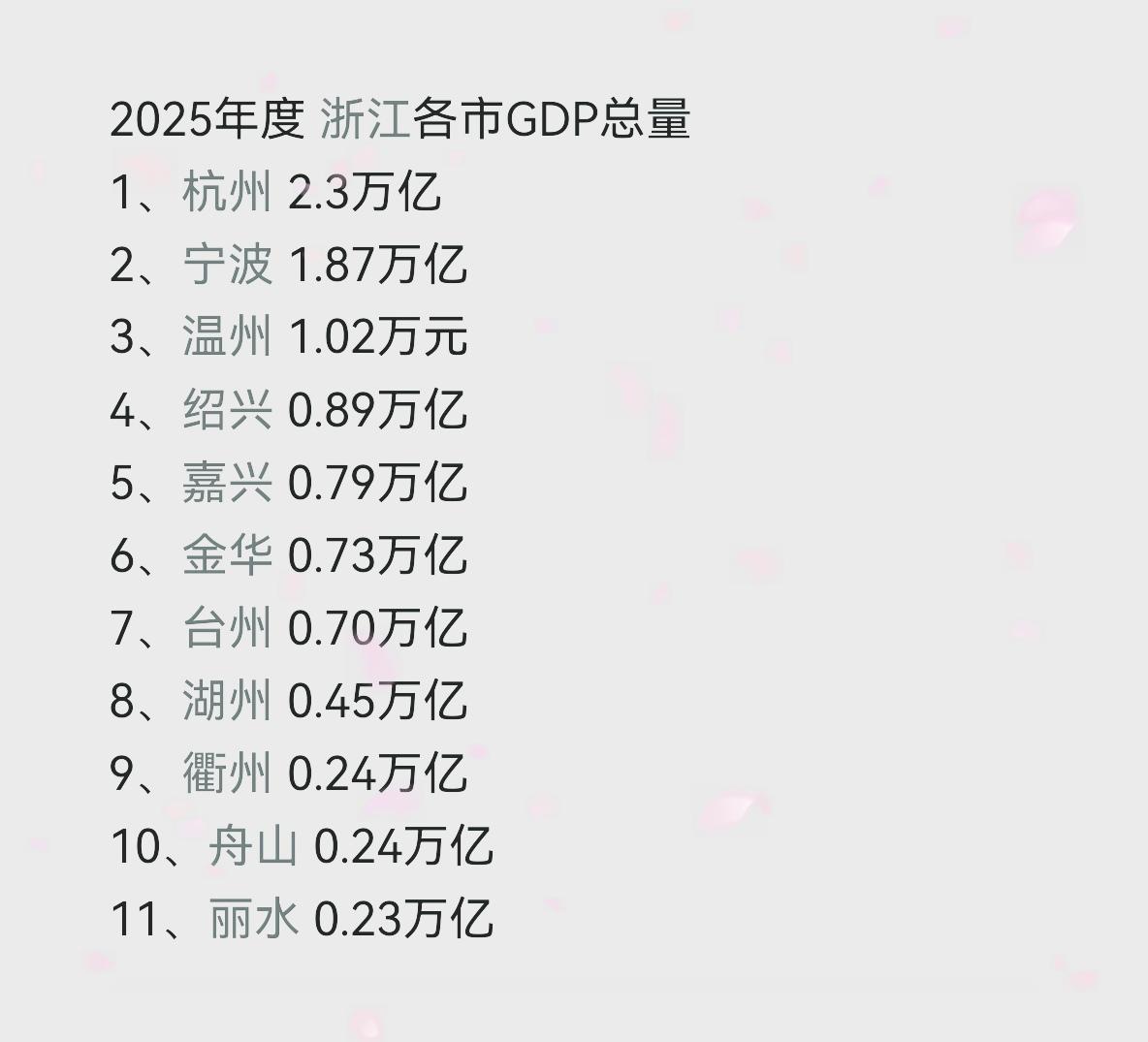 头部城市与尾部城市,差距仅在一个小数点。 从GDP角度而言,这个小数点颇具致命性。想要移动这一个小数点,或许50年、100年都难以达成。 除了GDP,是否还有其他衡量标准呢? 比如文化、环境、幸福指数…… 你是钟情于繁华的杭州,还是偏爱拥有绿水青山的丽(lí)水?