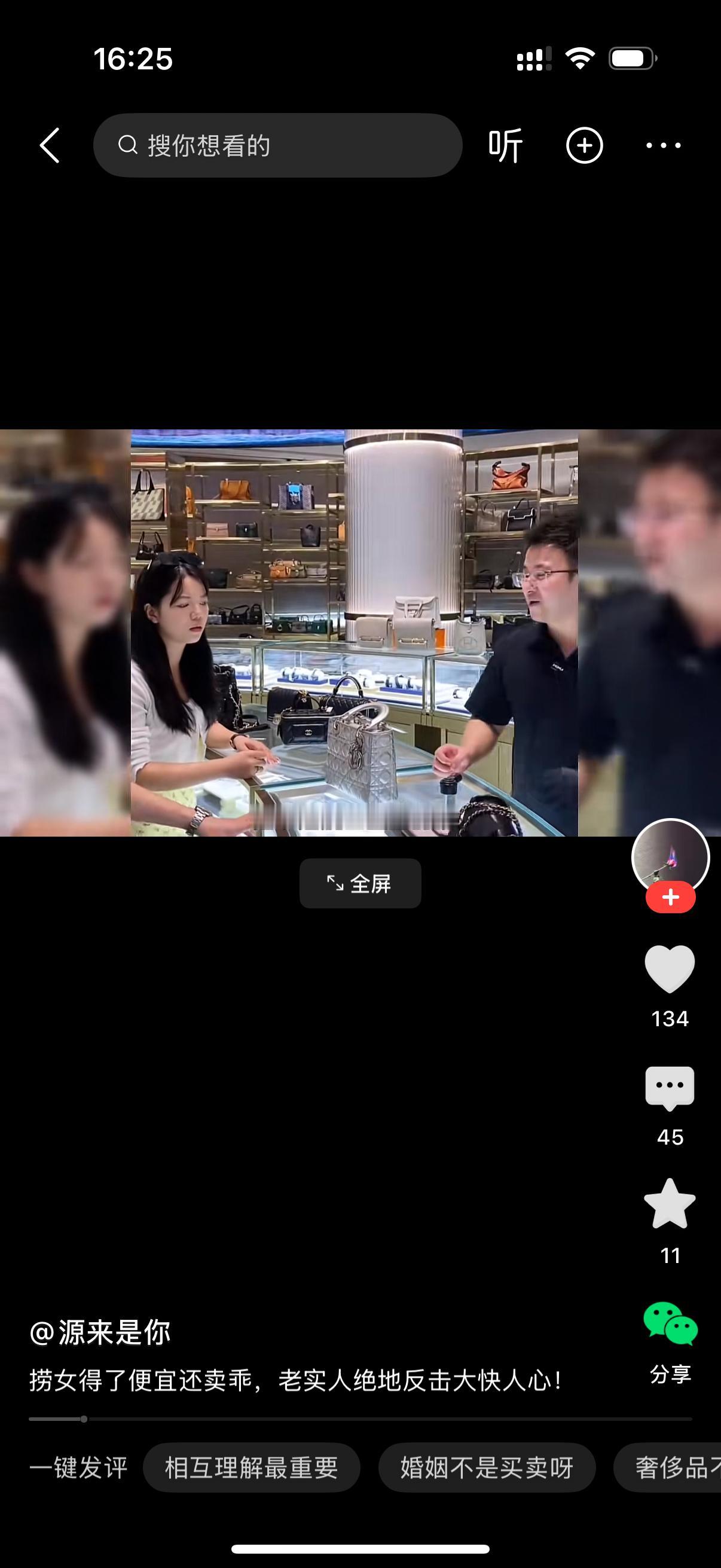 女人又看上了一个爱马仕的包包,非要男朋友给她买。男友说上个月才给你买了一个迪奥的包啊。女人说我的闺蜜背的都是爱马仕香奈儿,凭什么我就只能背迪奥的包?我比她们差哪呢?男友说自己确实没钱了,刚刚不是给你买了一块手表吗?现在连吃饭钱都没有了。咱们省点吧,还要结婚用了。女人怒吼,你就知道结婚?我要的大奔在哪?彩礼在哪?我要的幸福感在哪?什么都没有就要结婚。我告诉你,你现在不给我买这个爱马仕包,我们马上就分手。男子甩手就是一巴掌,把送给女人的手表和迪奥包抢回来就离开了。女人傻了,新的没买,旧的也还回去了。