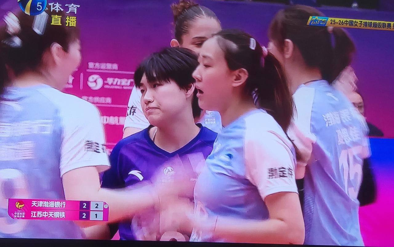 决胜局天津女排对阵江苏女排回到同一起跑线上!前四局比赛双方比分打到2-2平。最后