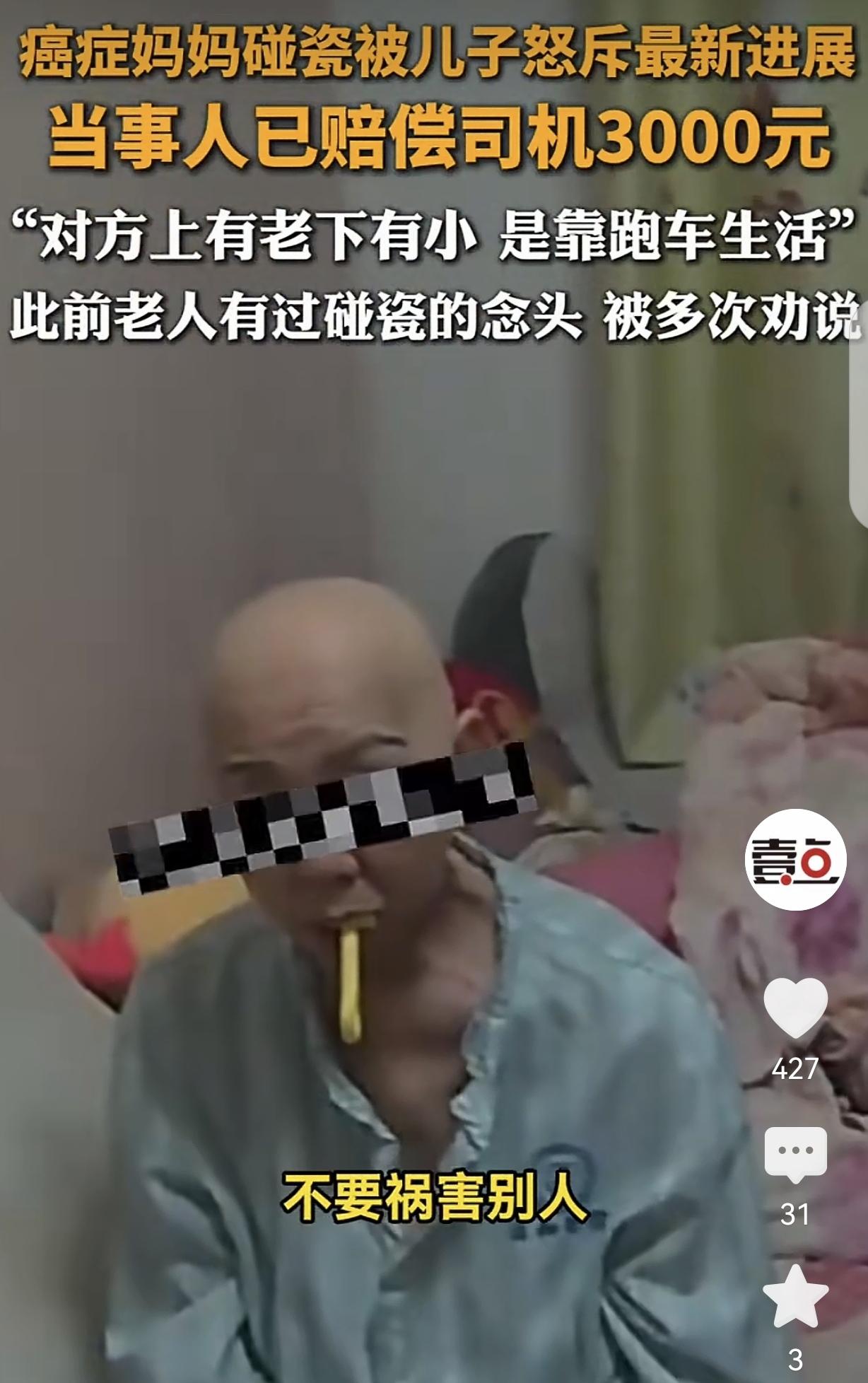 “碰瓷大反转!”湖北武汉,一64岁母亲被确诊口腔癌,她看治疗费要把儿子压垮,竟为减轻儿子负担,跑到大街上碰瓷大货车筹治疗费,儿子斥责母亲:你不要害别人!万万没想到,网友被儿子的正直感动,你1元,我5元,给母子俩凑了20000多元医药费,还联系养老院让老母亲入住。 熊先生父母离婚多年,他一直和母亲相依为命,可不幸的是,64岁母亲还没来得及享福,就被确诊口腔癌。 经过化疗,母亲头发掉光了,被疾病折磨的面容憔悴,虽然病情稳住了,但后续的治疗费压力山大。 母亲的治疗费,医保可以报销一部分,母亲的原单位也可以报销,但这需要时间,前期得他们自己垫付,熊先生已经到了山重水尽的地步。 母亲看到儿子愁眉不展,不想拖垮他,竟产生了去碰瓷的想法。 这天,熊先生在医院里无论如何也找不到母亲,正在他心急如焚时,突然接到了交警电话,说他母亲出了车祸。 熊先生心急火燎赶到现场,还好有惊无险,母亲毫发无损,但熊先生一查监控,顿时目瞪口呆。 他竟然发现,母亲假装摔倒,企图碰瓷大货车,母亲在他的追问下,也承认了,她想为儿子分担,不得已出此下策。 熊先生知道母亲心疼自己,他不忍心责备她,但他还是声色俱厉的斥责母亲:你为什么去害别人?你怎么能做这种事情?你想讹钱碰瓷,这不是祸害别人吗? 熊先生既心疼又生气有些语无伦次,也有些口不择言,训斥完母亲,问他泪如雨下。 这件事曝光后,引发关注,大家被熊先生的正直感动了,老母亲的行为虽然可耻,但她也是实属无奈,迫不得已,当妈的心疼儿子,也无可厚非。 于是,大家没有围攻母子俩,反而用善良和慈悲托举了他们,你一元,我五元,给母子俩捐款,一下子凑了2万多治疗费。同时,还有热心网友,联系养老院,让熊先生的母亲免费入住。 这事儿真是让人心里五味杂陈,碰瓷,这词儿一听就让人皱眉头,可这位母亲碰瓷,却让人恨不起来,反而满是心疼。 为啥?因为她不是为了自己贪便宜,而是被生活逼得走投无路,想给儿子减轻点负担啊! 这背后,是一位母亲对孩子深深的爱,是那种“只要你好,我怎样都行”的无私。 可话说回来,碰瓷这事儿,真不能干!不管出于啥原因,它都是错的,是对别人权益的侵犯,也是对社会秩序的破坏。 熊先生为啥那么生气,斥责母亲“不要害别人”?因为他心里有杆秤,知道啥是对啥是错。 他明白,母亲再难,也不能走这条歪路,不能因为自己的困境,就让别人遭殃。 这种正直和坚守,真的太难得了,尤其是在那么艰难的情况下,还能守住底线,不向错误妥协。 好在,这世界还是好人多。网友们的反应,让人看到了人性的温暖和善良。他们没有被碰瓷的表象迷惑,而是看到了背后的无奈和苦衷。 大家没有指责,没有谩骂,而是纷纷伸出援手,你一元我五元,凑起了治疗费,还帮忙联系养老院。 这不仅仅是钱和物质的帮助,更是精神上的支持和鼓励,让这对母子知道,他们不是孤军奋战,社 会没有抛弃他们。 这事儿也给我们提了个醒,生活中谁都有可能遇到难处,都有可能被逼到墙角。 但越是这样,越要守住内心的善良和正直,不能因为一时的困境就做出错误的选择。 同时,我们也应该多关注身边的人,多一份理解和包容,少一份冷漠和指责。 当看到别人有困难时,能帮一把就帮一把,哪怕只是一句温暖的话,一个鼓励的眼神,也可能成为别人黑暗中的一束光。 另外,如果熊先生母亲的治疗费能及时报销,如果他们能得到更多的援助,也许就不会走到碰瓷这一步。 所以,如何更好地为困难群体提供帮助和支持,让他们在遇到困境时,有更多的选择和出路,而不是只能靠碰瓷这种极端方式来解决问题。 总之,这事儿让人感慨万千,既看到了人性的丑陋和无奈,也看到了人性的美好和善良。 希望熊先生和他的母亲能早日走出困境,也希望我们每个人都能守住内心的善良和正直,让这个世界变得更加温暖和美好。 对此,你怎么看?