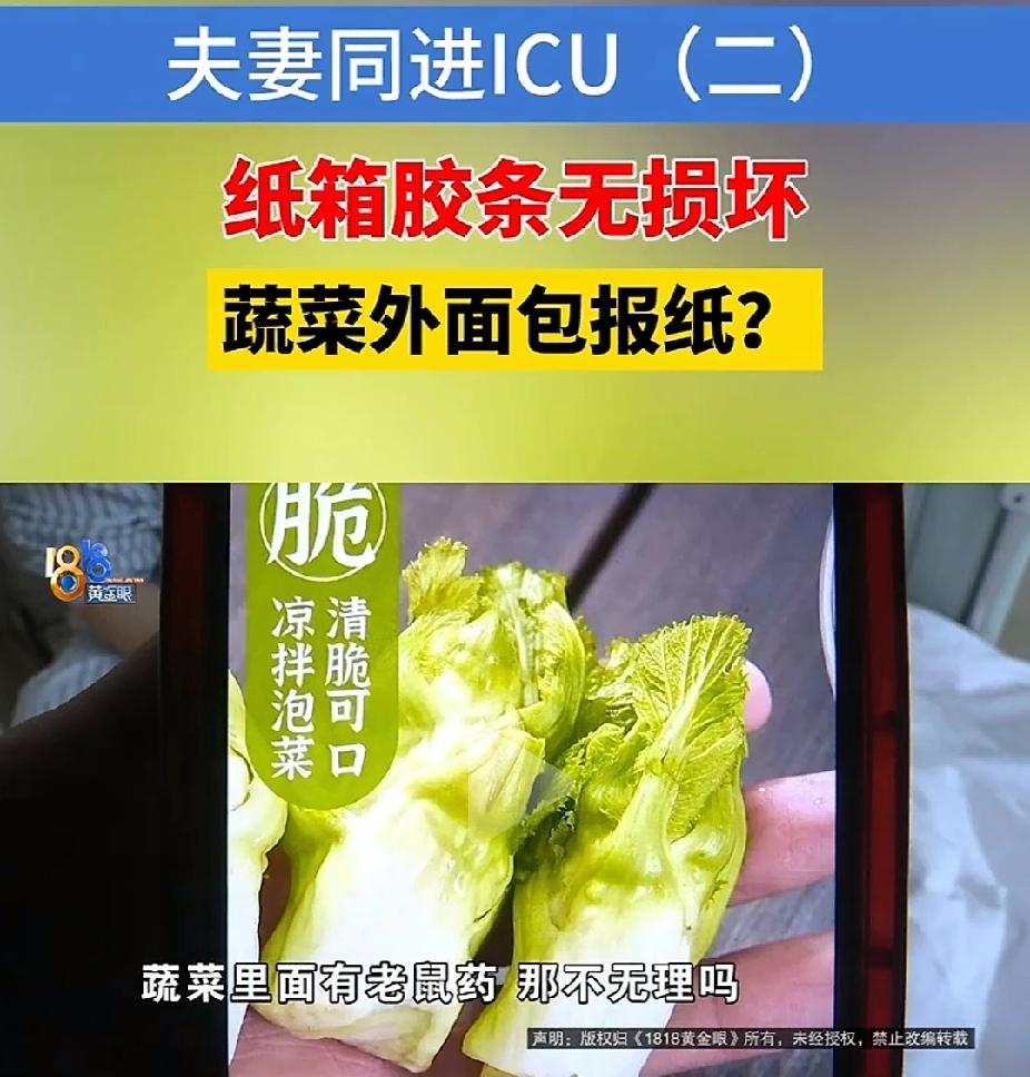 紧急!夫妻同进ICU怀疑网购的蔬菜,目前当地警方已介入调查 旧报纸裹着娃娃菜,毒从口入却查不到源头,谁在为这漏洞买单?台州一对夫妻吃了网上买的娃娃菜,第二天就开始牙龈出血、身上起紫斑。妻子情况更重,直接进了ICU,住了快一个月才出来。医生说,这是溴鼠灵中毒,就是我们平时说的老鼠药。不是菜里打的农药,是包装纸上的毒沾上去的。 那张包菜的旧报纸,警方检测出溴鼠灵浓度是安全值的12倍多。菜叶子上反而少很多。甘肃那边种菜的地里,当天根本没用过鼠药,土里也没检出残留。毒不是长在地里,是裹在纸里带进来的。 卖菜的店叫“森逸轩花卉园艺”,卖花的店顺手卖菜,连农产品备案都没有。平台也没拦着,生鲜类目只看营业执照,不管包装干不干净。快递一到,报纸一裹,菜就上了桌。没人想过这张纸可能刚擦过老鼠药瓶子。 天台县市场监管的人说,他们抽检蔬菜农 拼多多年报里写得清清楚楚:生鲜商家用的包装材料,平台没一项检查。这不是疏忽,是压根没管。全国疾控中心刚发的通报也说了,去年四成溴鼠灵中毒,根本不是吃进去的,是摸的、碰的、裹的。 平台对生鲜包装的监管形同虚设,疾控中心的通报更是撕开了残酷真相——原来致命的风险,竟藏在我们随手触摸的包装上!这样的安全漏洞谁来填补?你还敢放心网购生鲜吗?评论区说说你的看法!