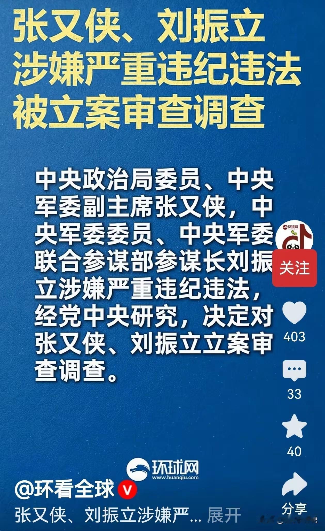 利剑出鞘!反腐再出重拳! 周未这则重磅通报,让人拍手称快! 彰显了军队反腐零容忍,且力度不减、决心不变,任何人触碰红线都将付出代价。确保军队的纯洁性,是战斗力的生命线。 忘记了初心使命,辜负了人民期盼,甚至丢掉了父辈积淀的荣光,终究会被钉在历史的耻辱柱上。 本来头上的光环应该成为强军路上的中流砥柱。但可惜,在权力中迷失了方向,忘记了当年的初心和使命。这不仅是个人的悲哀,更是对历史的背叛! 打铁还靠自身硬,强军路上无弱旅,纪律是战斗力源泉。清除害群之马,永葆人民军队的初心本色和优良作风。 坚决支持和拥护国家的决定! 国家反腐 人民反腐 中央反腐 基层反腐 中央反腐倡廉 中国反腐