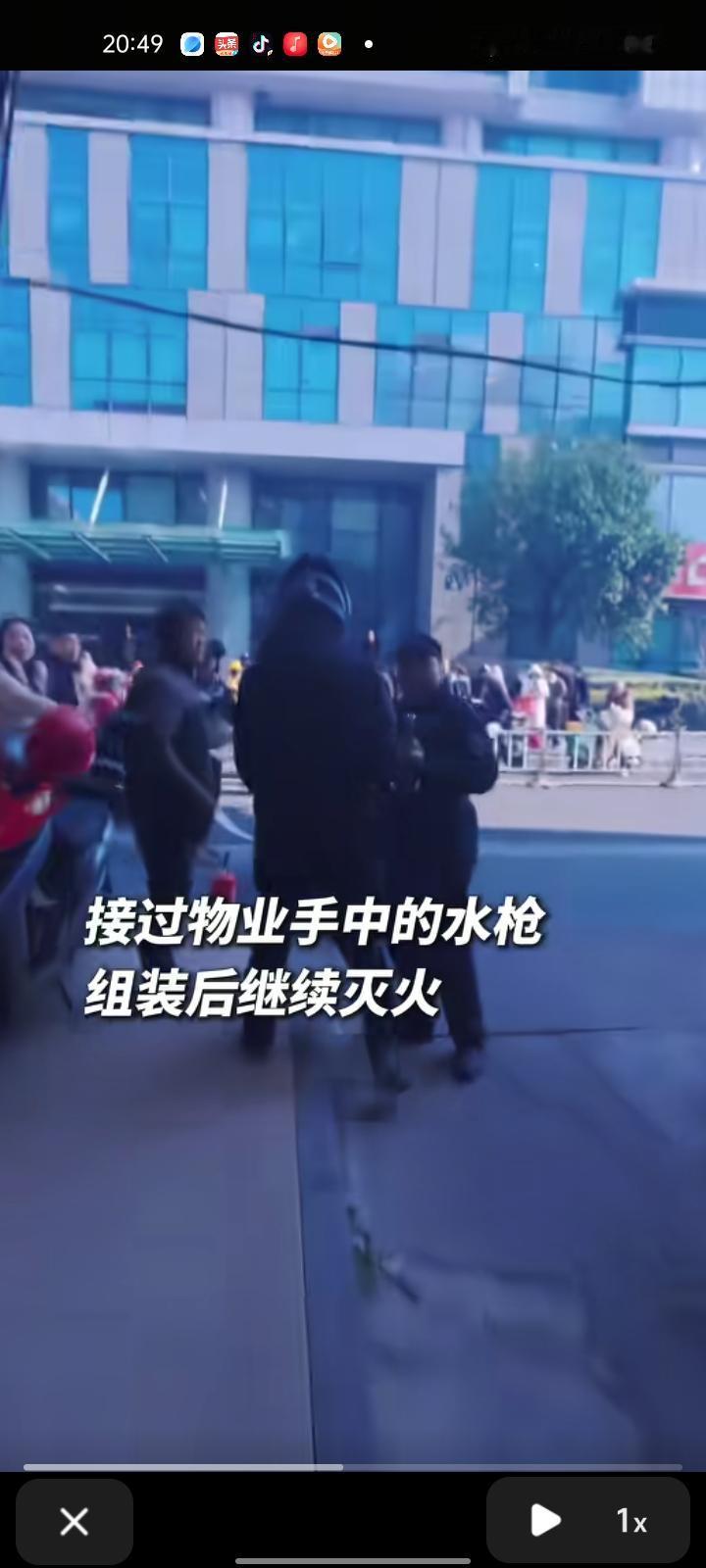 1月21日,浙江宁波。外卖员杨先生送餐途中遇到火情,毫不犹豫参与救火,其间他使用
