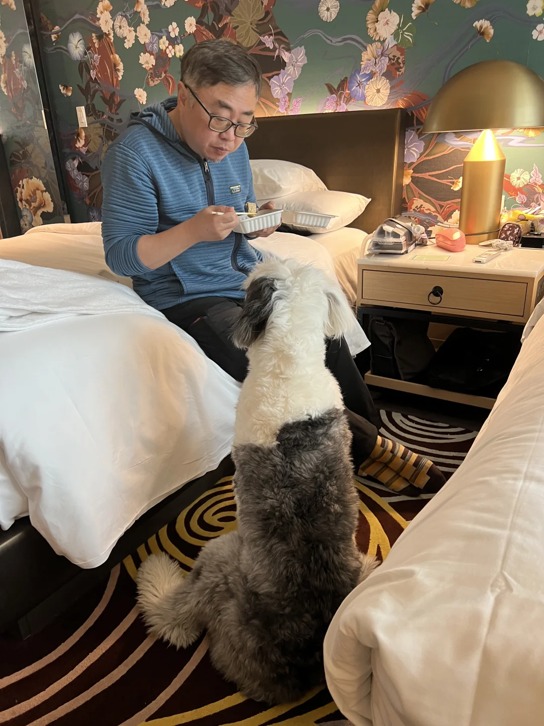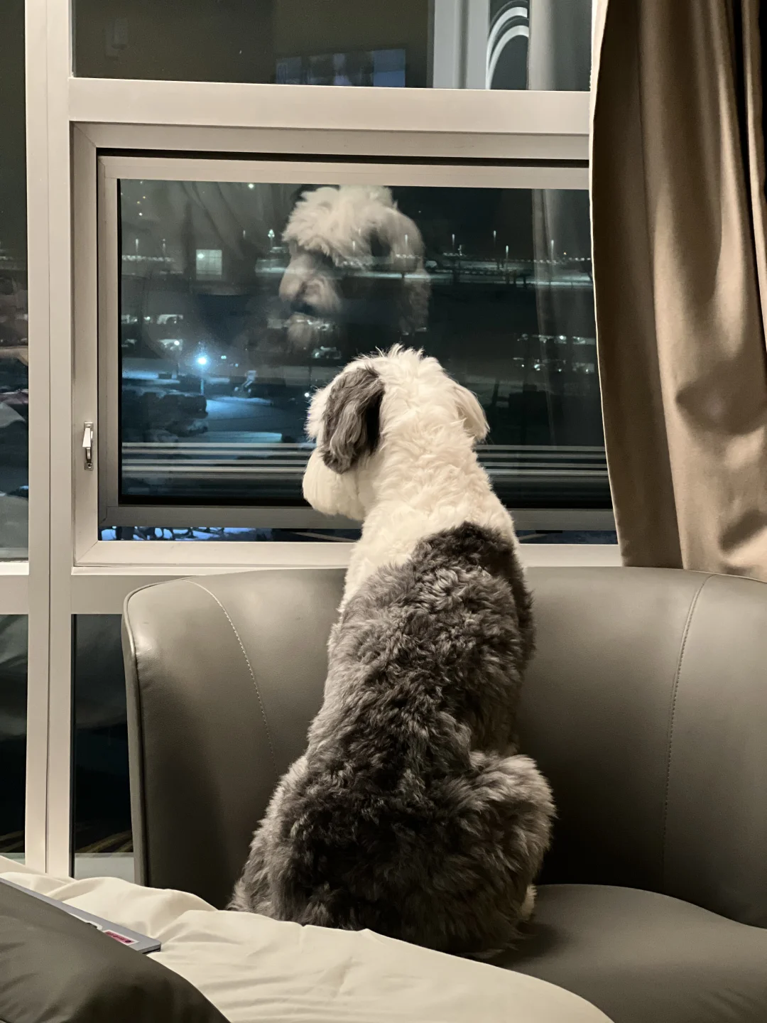 三年前的今天,家里人开车带着我越过美加边境,去温哥华玩了三天。我玩了雪,跑了狗公园,逛了街,但是最最开心的还是和家人腻歪在酒店里!他们连吃饭都舍不得丢下我一个狗,都是打包回来吃的。我的三只羊无时不刻的都在我的视线里,心里不知道有多满足呢!