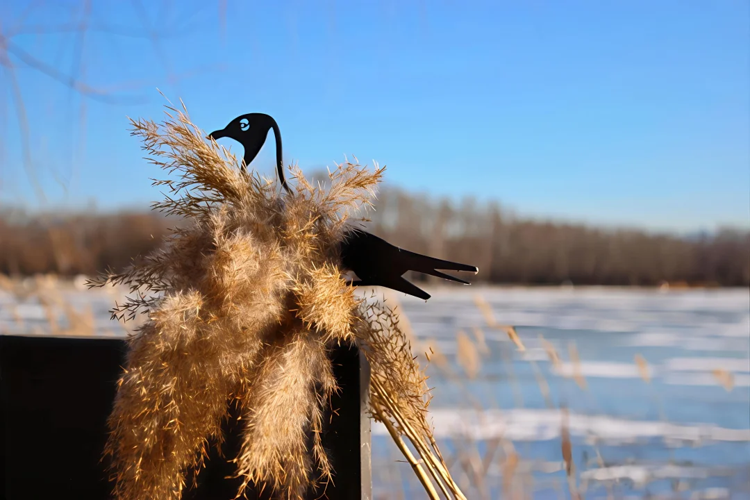 💡 "好一条斜路"的木质指示牌🪵,背后是冰封的湖面和光秃秃的枝桠🌿,歪歪扭扭的字体自带幽默感,忍不住合照100张!